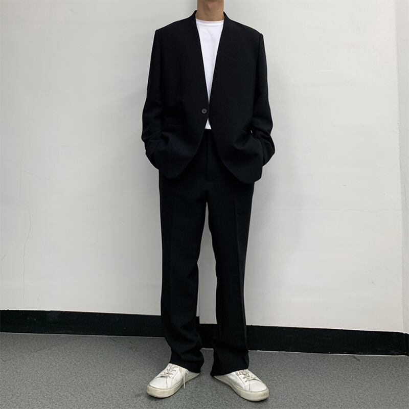 2022年新作カジュアルパンツメンズルーズストレートワイドレッグオールマッチドレープパンツバージョントレンド9点スーツパンツ ワイドパンツ BLUU21340439453