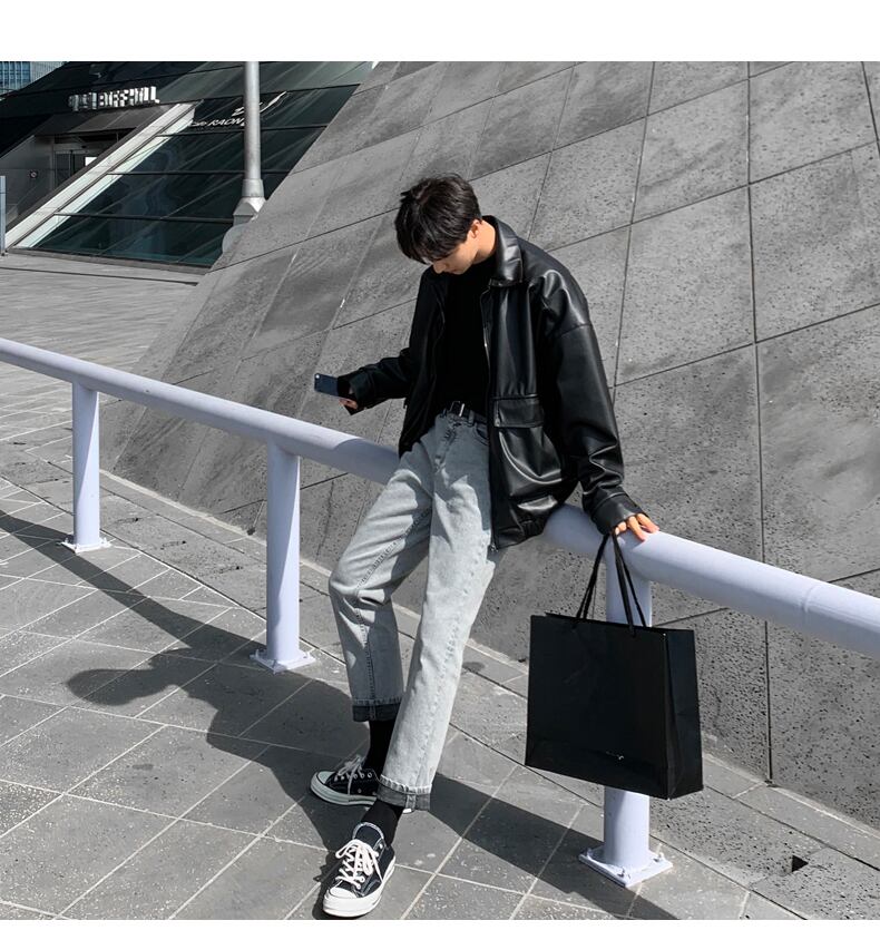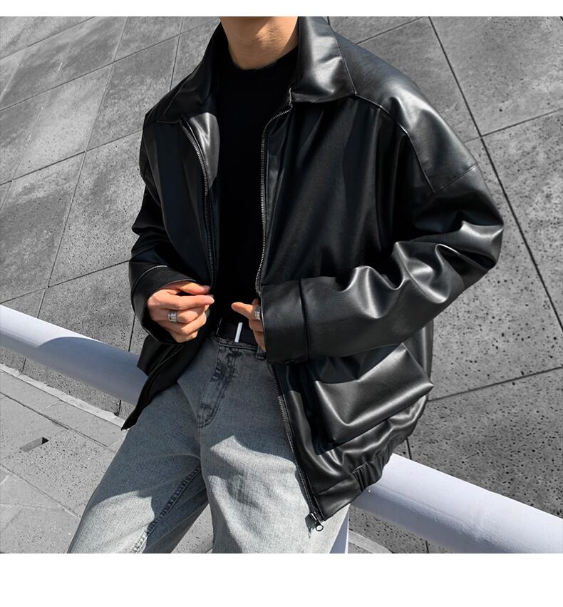 2022年新作レザージャケットメンズラペル香港スタイルレトロルーズトレンドオールマッチレザージャケットバイクスーツトップコート BLUU42794351986