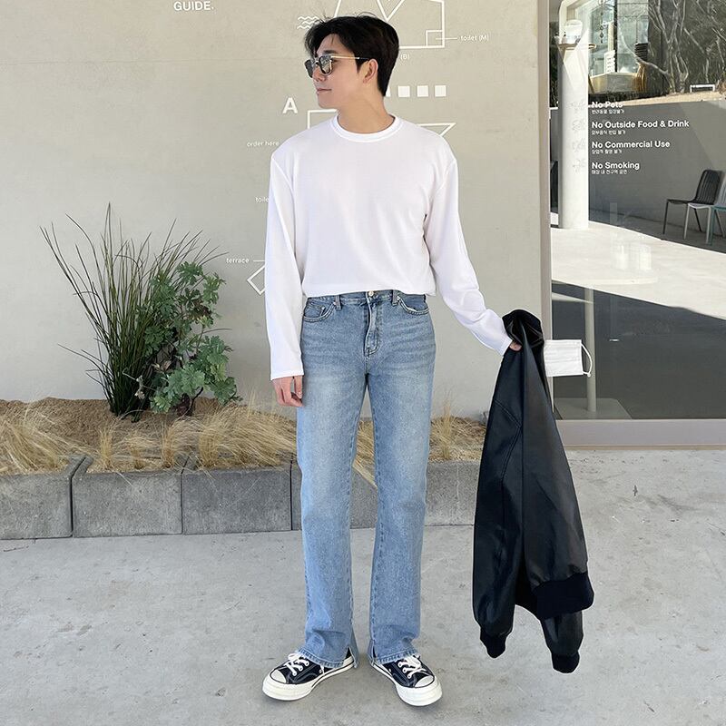 ストレートレッグジーンズメンズ2022年春新作ルーズトレンドファッションブランドワイドレッグオールマッチストレッチカジュアルパンツ スプリング 春物 BLUU98309829141