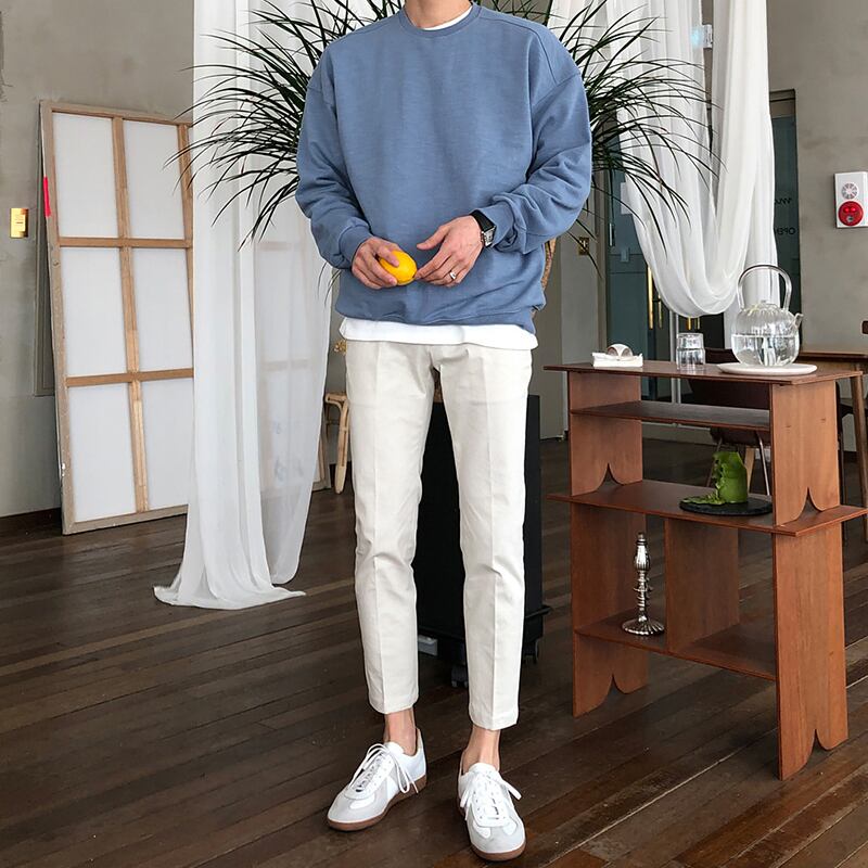香港スタイルのセーターメンズ2022年春の新バージョントレンドインルーズオールマッチラウンドネック無地トップコートタイドブランド スプリング 春物 Oネック ソリッドカラー BLUU41016312905