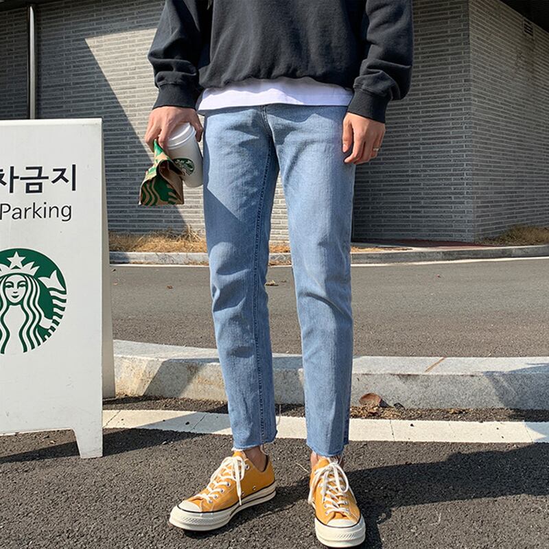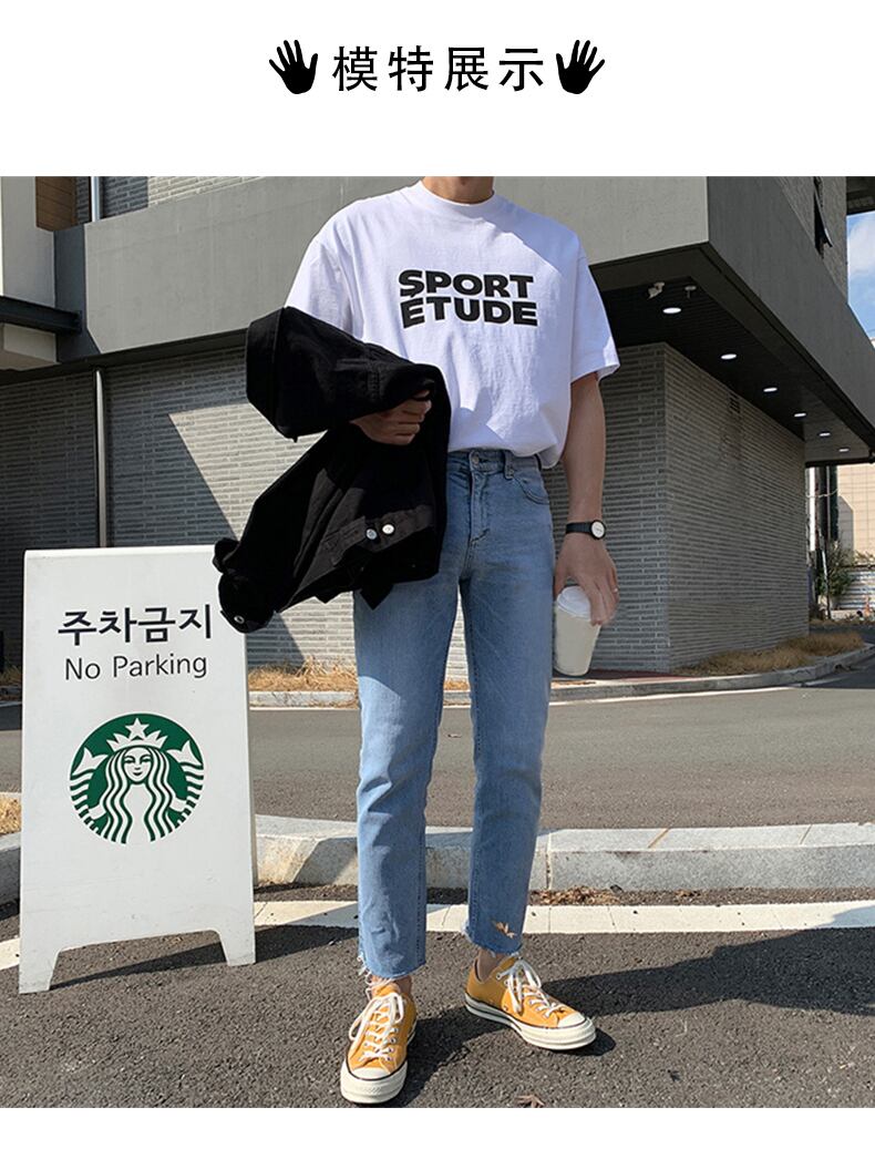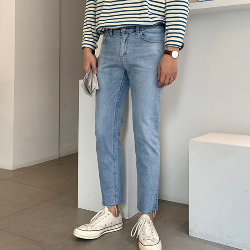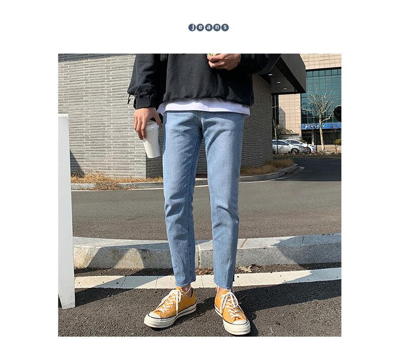 ライトカラージーンズメンズタイドブランドストレートカジュアルスモールフィートトレンドバージョンオールマッチ9点パンツ2022夏薄切片 レッド サマー 夏物 BLUU57693904061