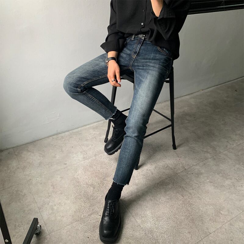 2022年新作ジーンズメンズタイドブランドバージョンのトレンドハンサムスリムスモールフィート9ポイントカジュアルパンツレトロオールマッチ BLUU6714953300