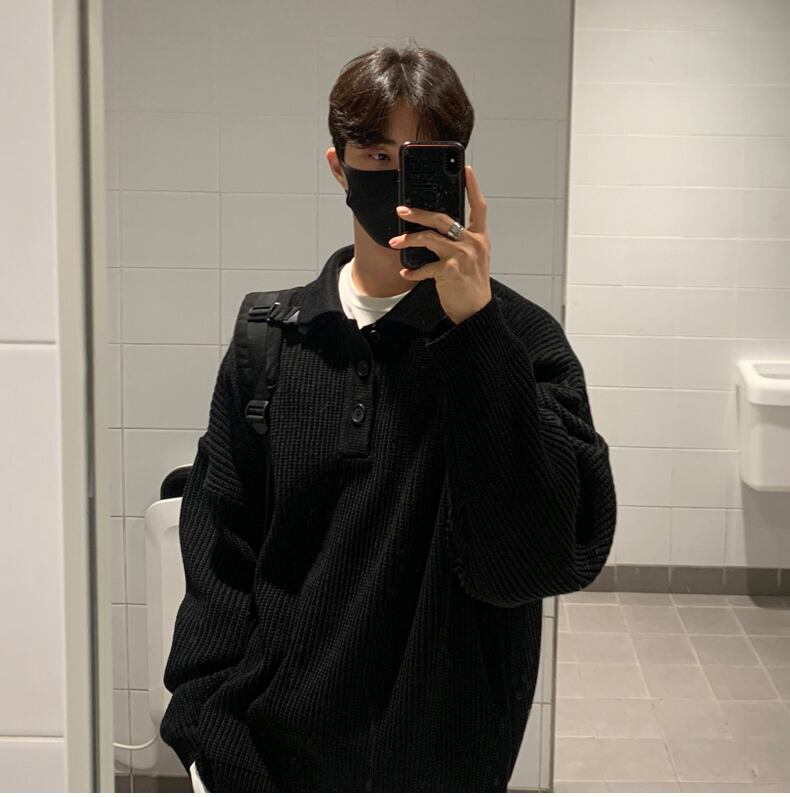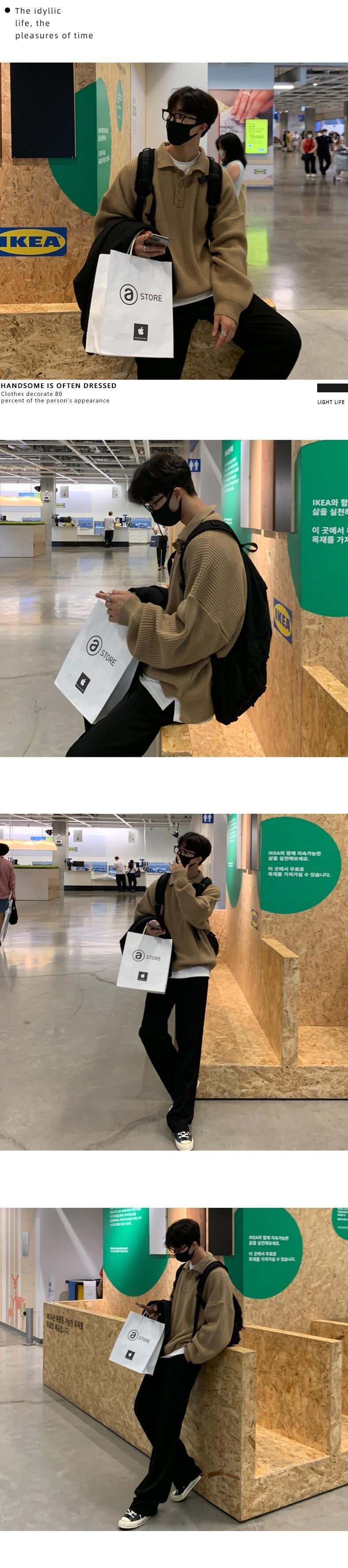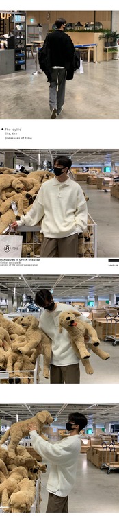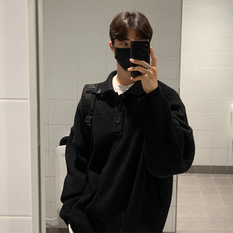秋冬ポロカラーセーターメンズルーズトレンド香港スタイルオールマッチ長袖無地ラペルニットセータートップコート ロング オータム 秋物 ウィンター 冬物 ソリッドカラー BLUU89772831192
