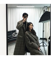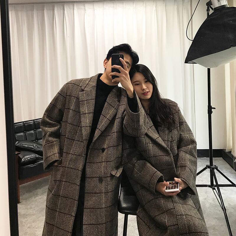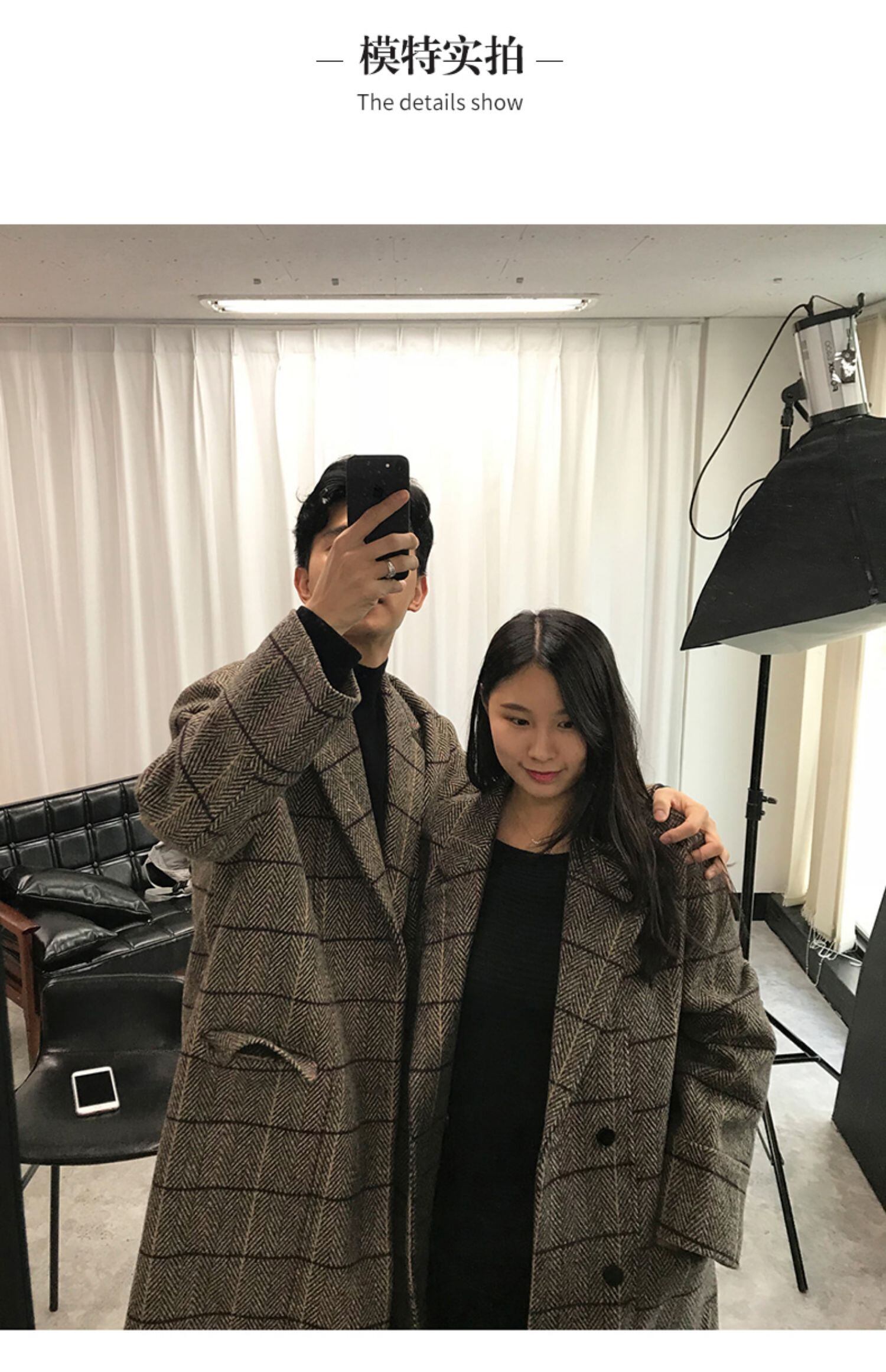 ウールコートミドル丈カップル冬の厚い格子縞の秋と冬のカップル英国スタイルのウールコート オータム 秋物 ウィンター 冬物 BLUU35486138240