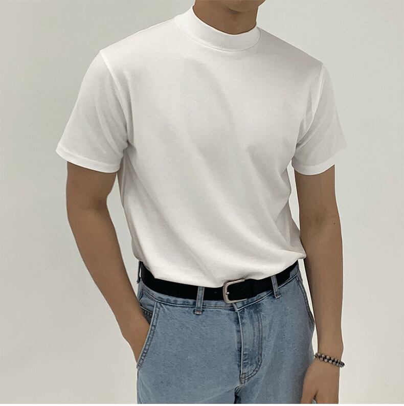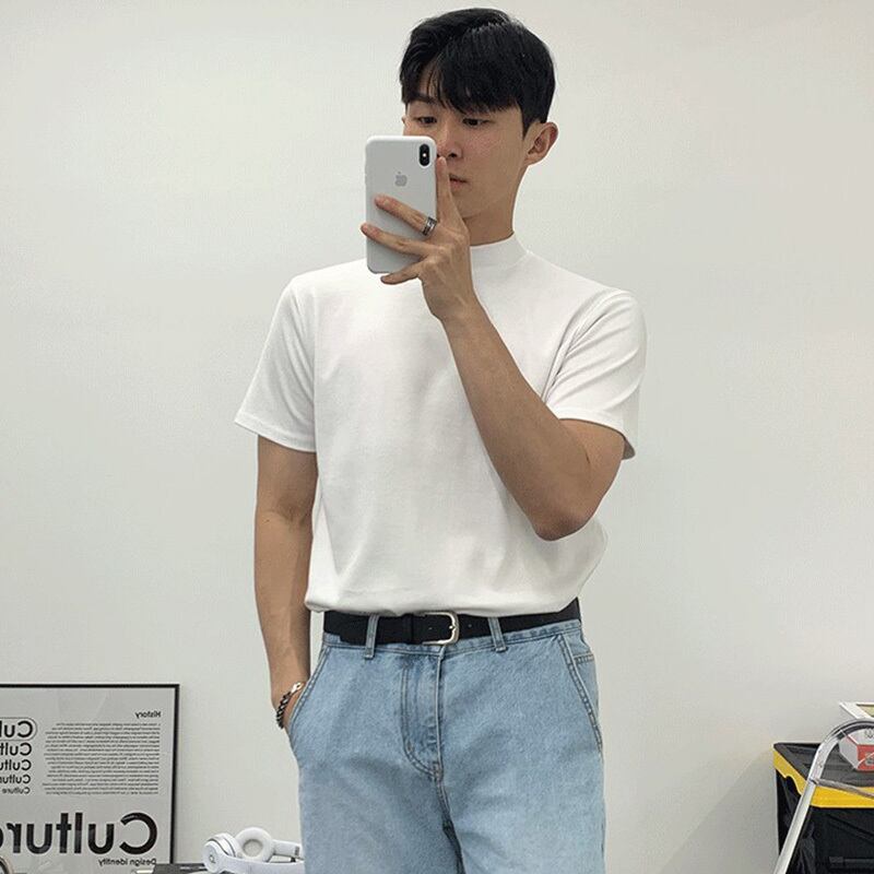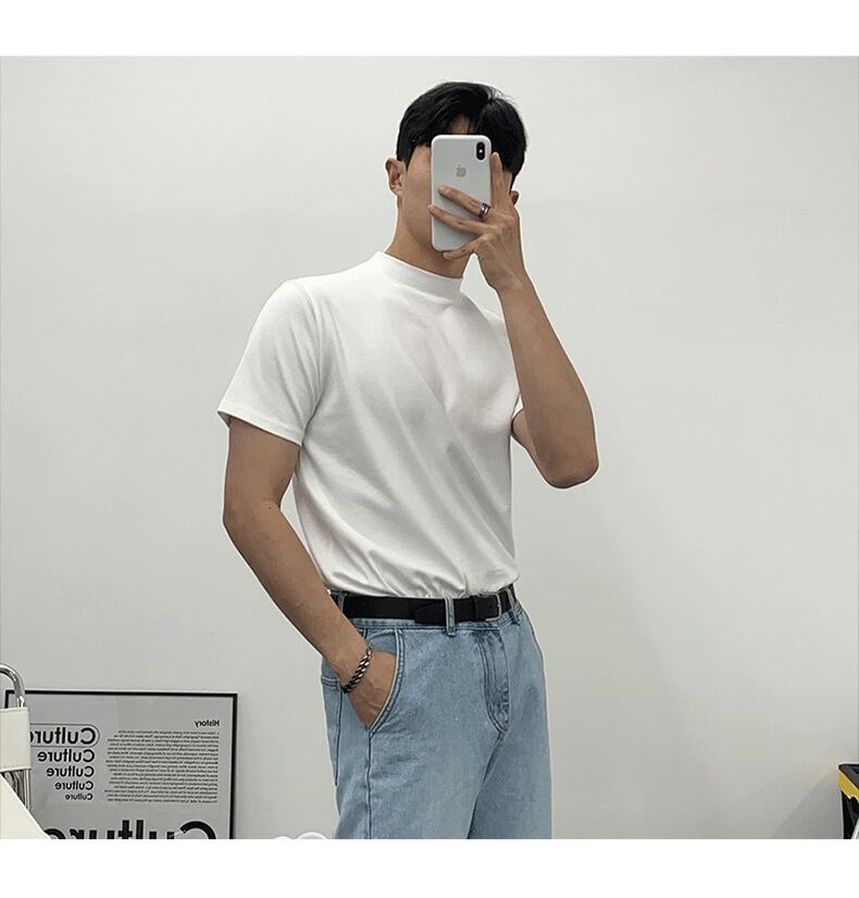 夏の新作ハーフハイカラー半袖メンズタイドブランドルースコットンバージョンの香港スタイル無地シンプルTシャツボトミングシャツタイド サマー 夏物 ソリッドカラー BLUU69951719540