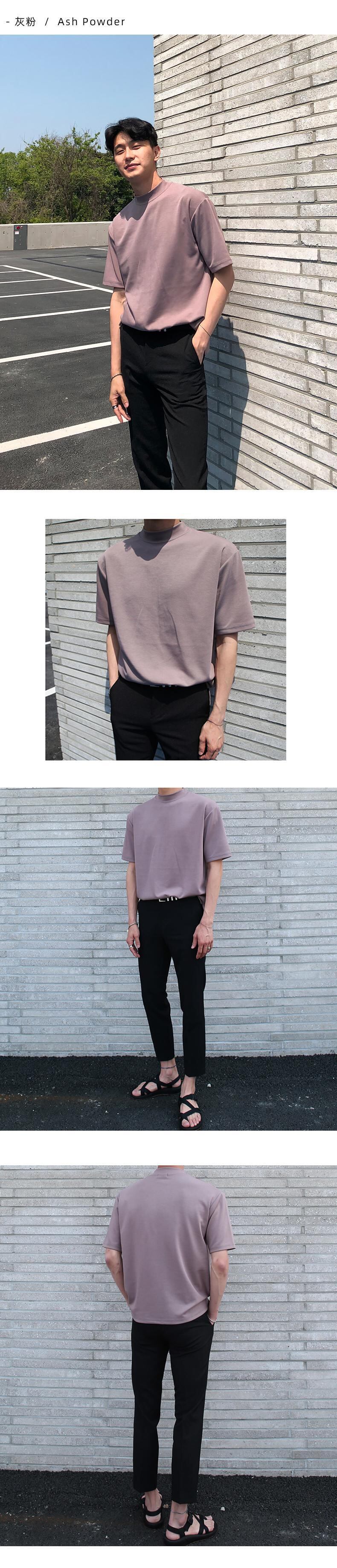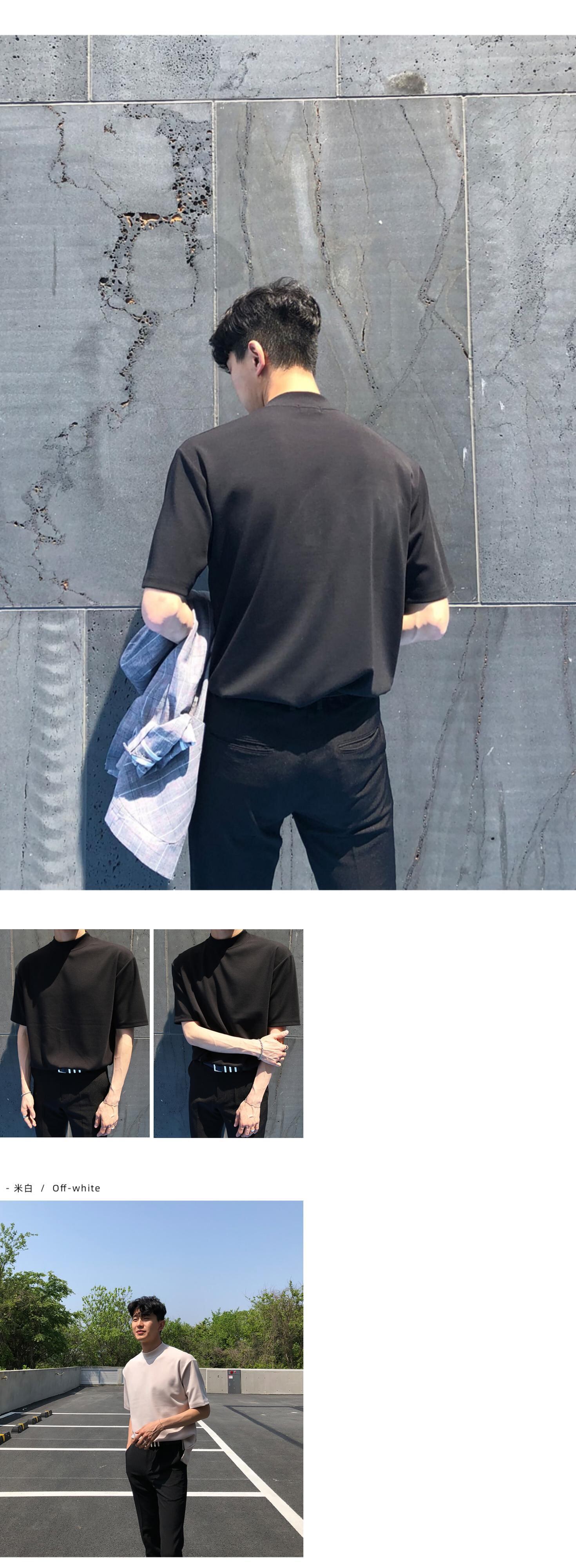 ハーフタートルネック半袖メンズタイドブランドTシャツルーズ無地長袖ボトミングシャツトップバージョントレンド香港スタイルTシャツ ロング ソリッドカラー BLUU38046729710