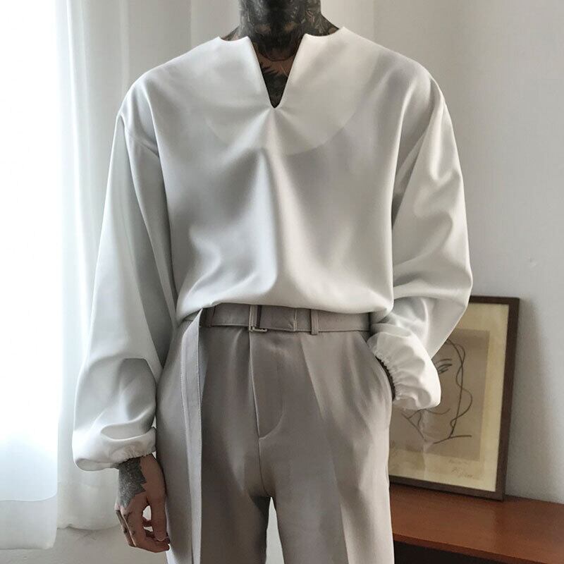 私はデビッド2022年春の新作シャツバージョンメンズパーソナリティハンサムプルオーバーラウンドネックシャツ長袖インチシャツです ロング スプリング 春物 Oネック BLUU81277886404