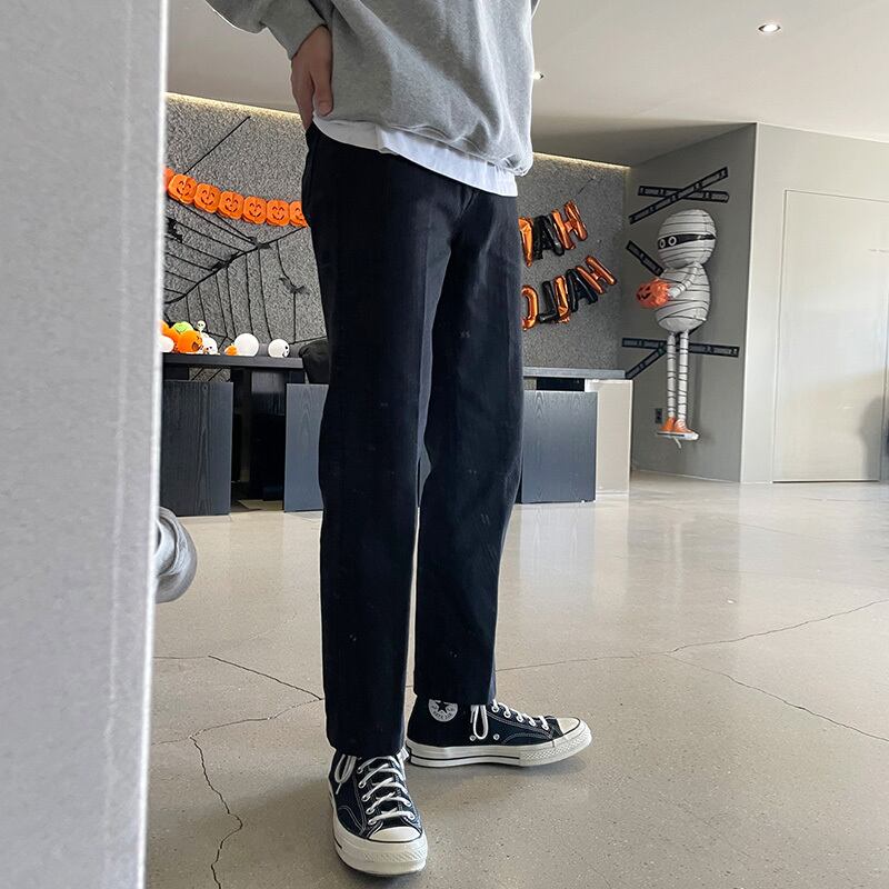 秋冬新作ルーズブラックジーンズメンズトレンディバージョントレンドオールマッチワイドレッグストレート9点カジュアルパンツ オータム 秋物 ウィンター 冬物 BLUU513622295