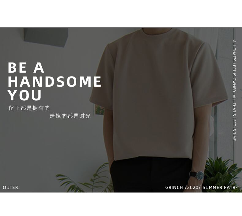 夏の半袖Tシャツ新バージョンメンズトレンドカジュアルTシャツルーズ無地コットンハーフタートルネックボトミングシャツ サマー 夏物 ソリッドカラー BLUU487668369