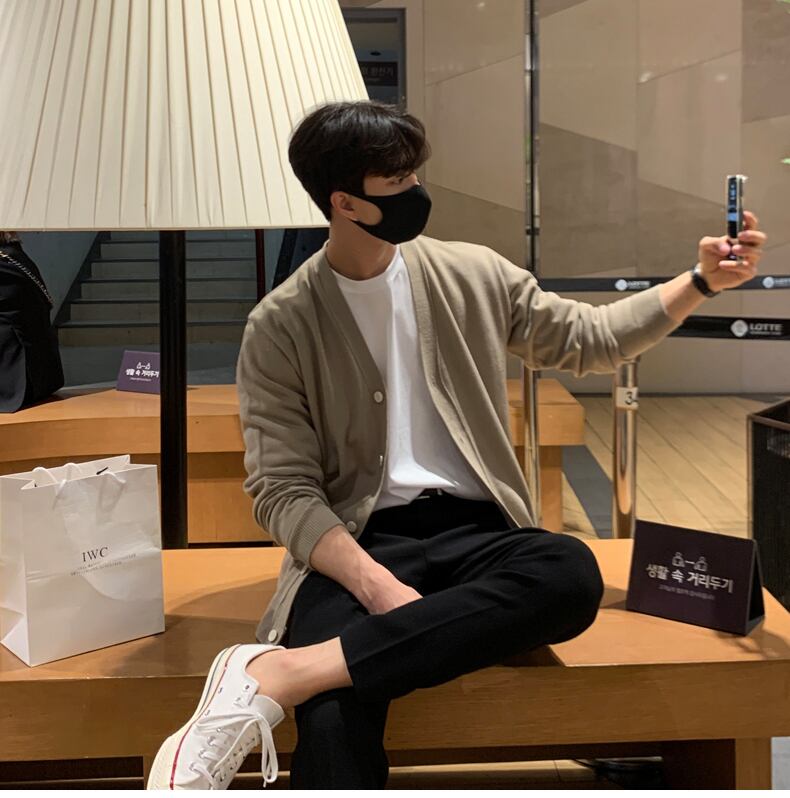 2022年の新しいニットセーターカーディガンジャケットメンズのシンプルで用途の広い無地のVネックセータールーズで怠惰なトレンド ソリッドカラー BLUU7311096236