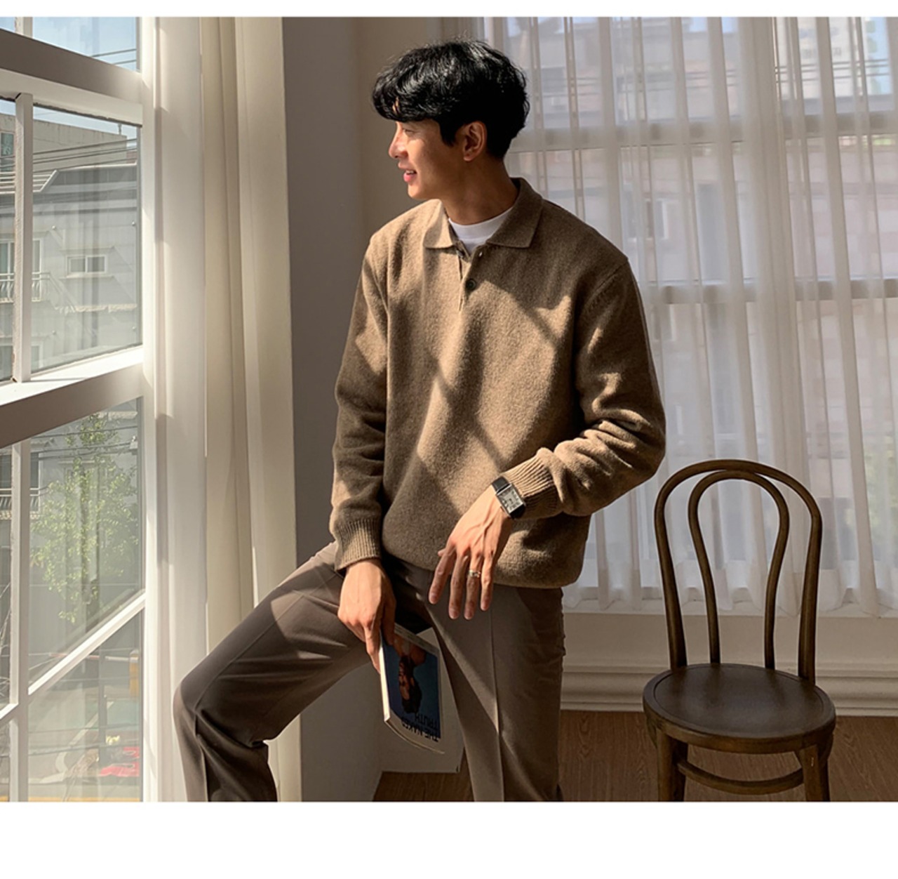 秋冬ポロラペル無地セーターメンズオールマッチカジュアルバージョンルーズプルオーバーセーター香港スタイルウェアライン服 オータム 秋物 ウィンター 冬物 ソリッドカラー BLUU84367595205