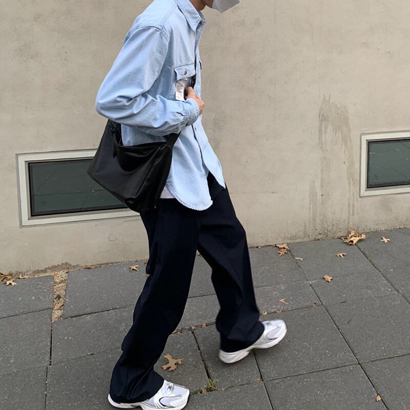 2022年新作ブラックドレープスーツパンツメンズストレートルーズルーズオールマッチペンダントワイドレッグモップ9枚カジュアルパンツ ワイドパンツ BLUU8205723211