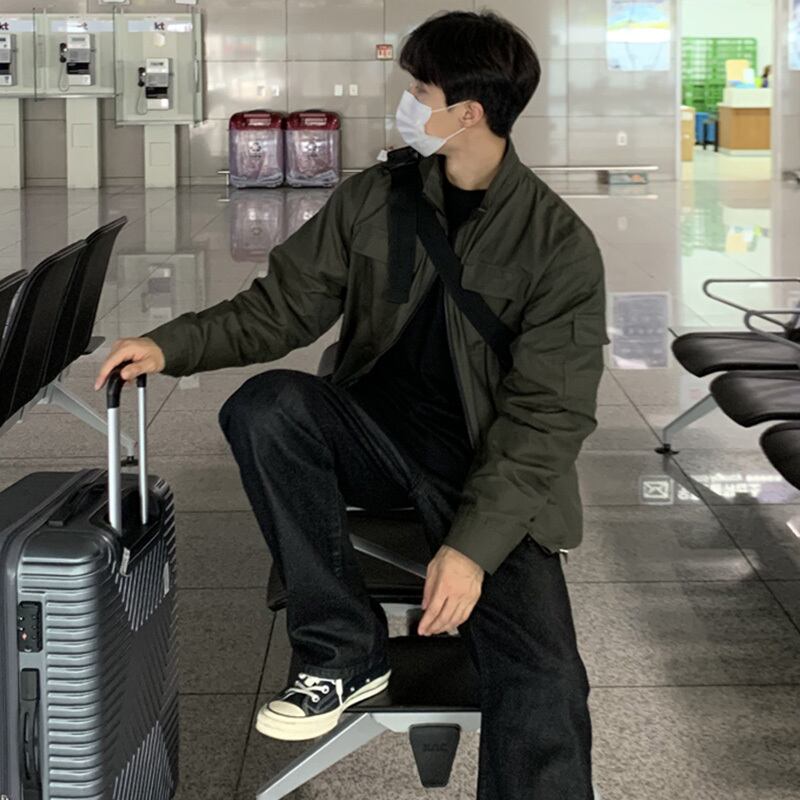 2022年春新アーミーグリーンツーリングコットンジャケットメンズタイドブランドルーズバージョントレンドカジュアルジャケットトップ スプリング 春物 BLUU25461137546