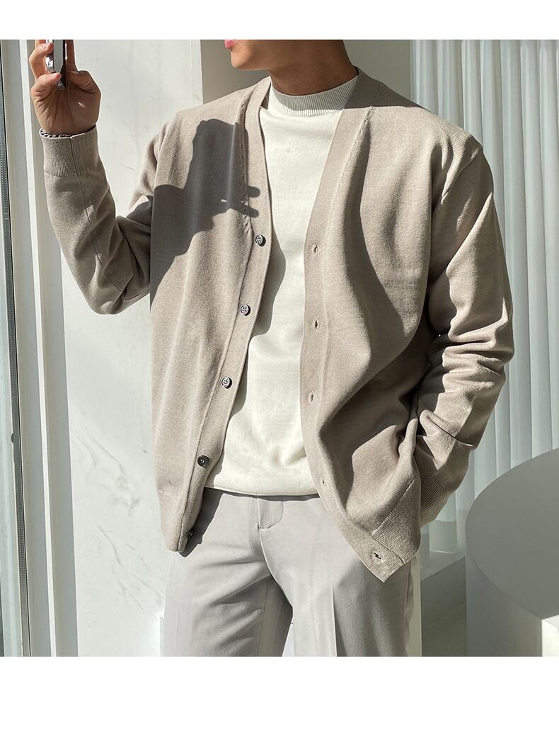 2022年新作Vネックセーターメンズバージョントレンドカジュアルオールマッチシングルブレスト無地ニットセーターカーディガンジャケット ソリッドカラー BLUU55053927298