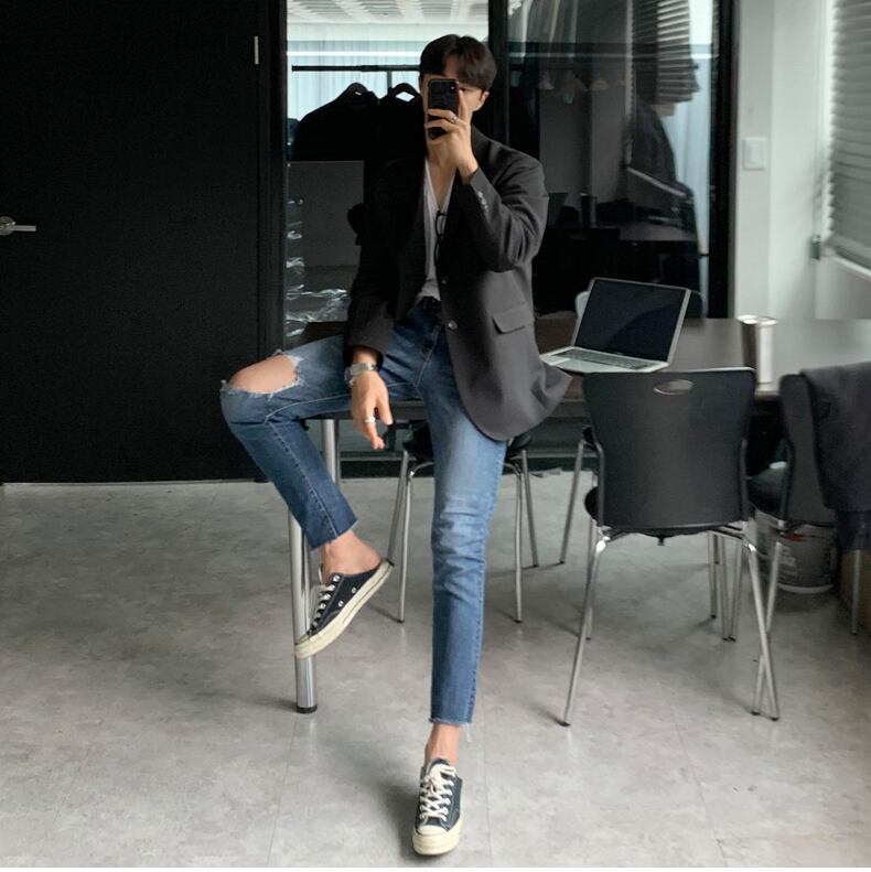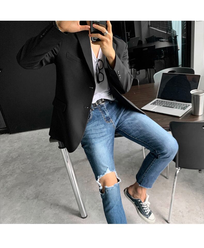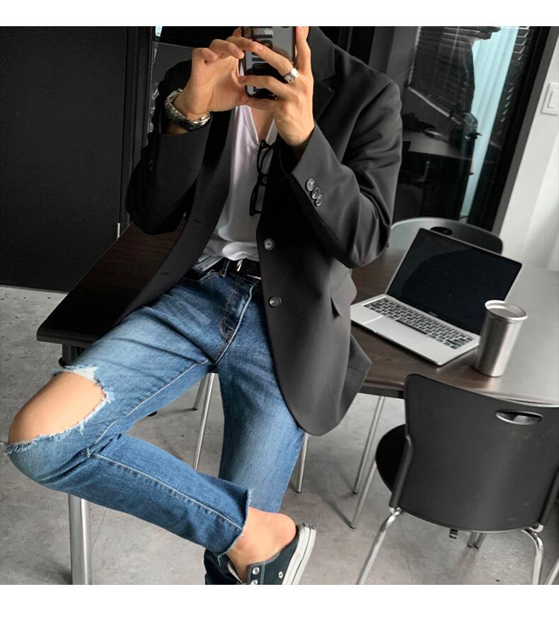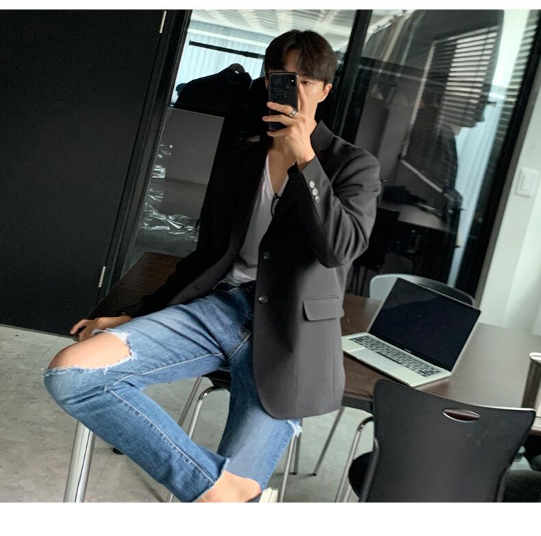香港スタイルのオールマッチシングルブレストカジュアルスモールスーツジャケットのトレンドのルフィアンハンサムブラックスーツジャケットメンズルーズバージョン BLUU52934051072