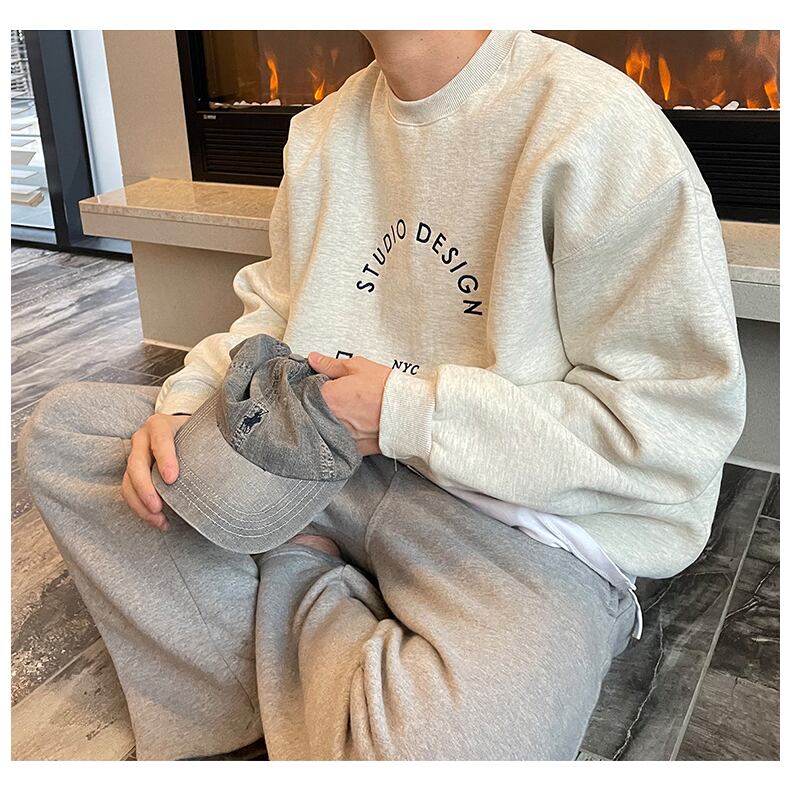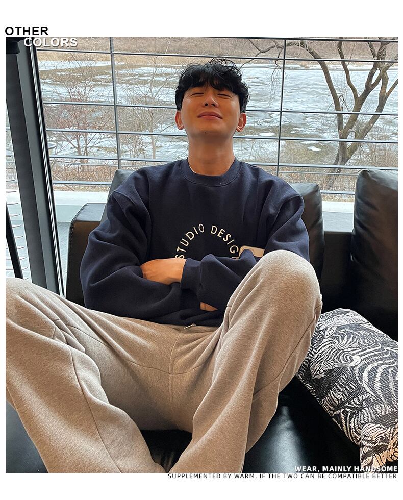 2022年春バージョンのラウンドネックセーターメンズ長袖タイドブランドトレンドインルーズレタープリントトップ服コート ロング スプリング 春物 Oネック BLUU36540879243