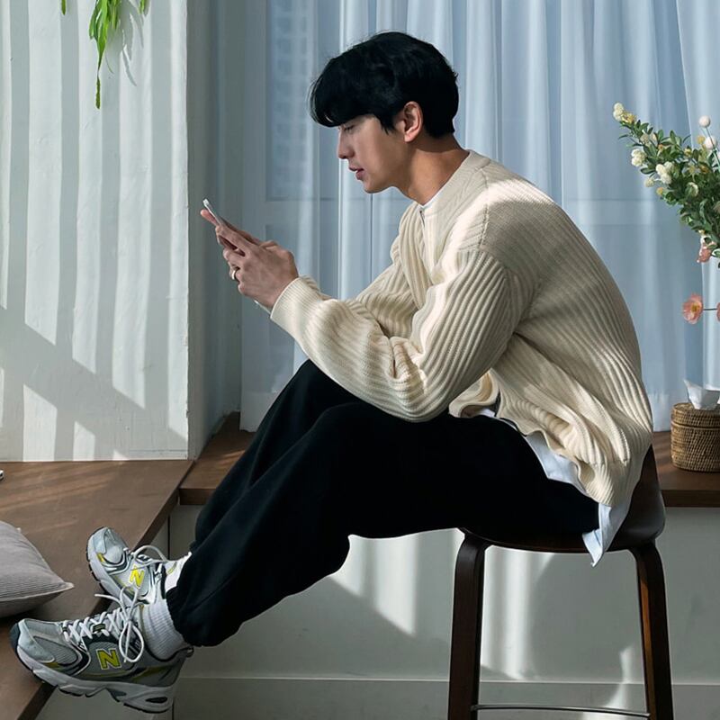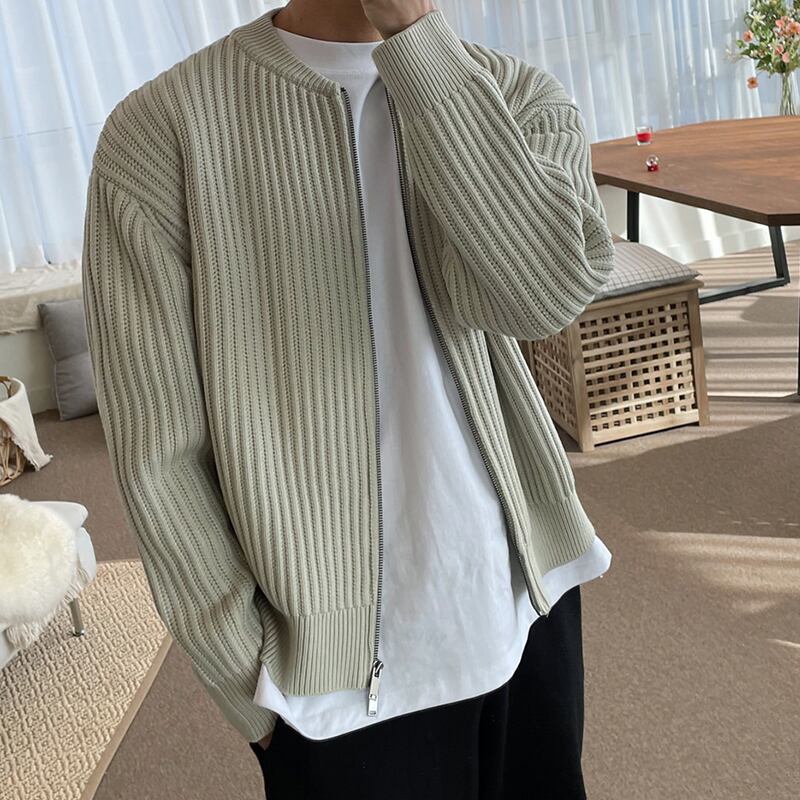 2022年春新作ニットセータージッパーカーディガンメンズバージョンルーズ無地ラウンドネックセーターコートトレンドオールマッチ スプリング 春物 Oネック ソリッドカラー BLUU23955921876