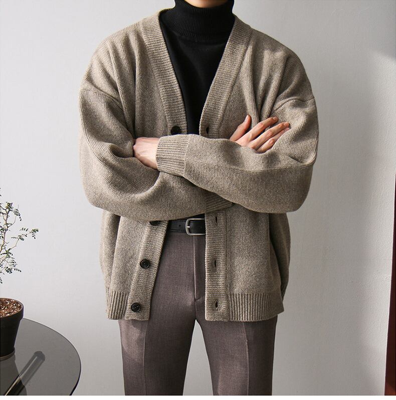 2022年春メンズVネックニットカーディガンジャケットバージョントレンド無地セーターメンズルーズカジュアル怠惰なスタイル スプリング 春物 ソリッドカラー BLUU77022935274
