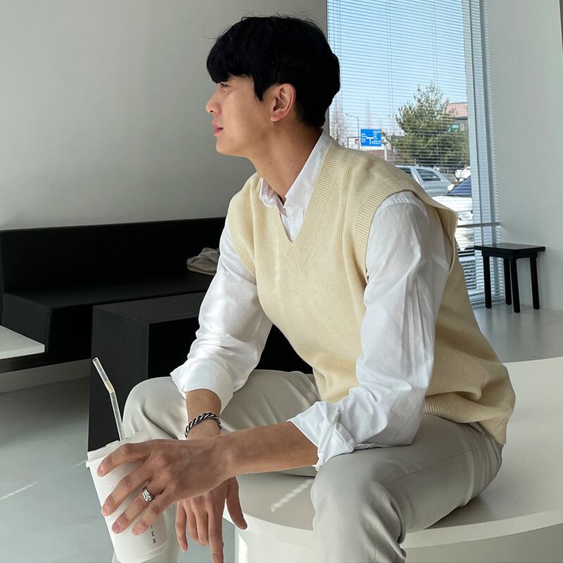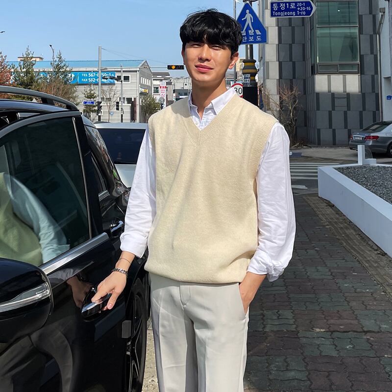 春の新作無地ニットセーターベストベストバージョントレンドノースリーブベストVネックセーターメンズカジュアルジャケット スプリング 春物 ソリッドカラー BLUU45154676513