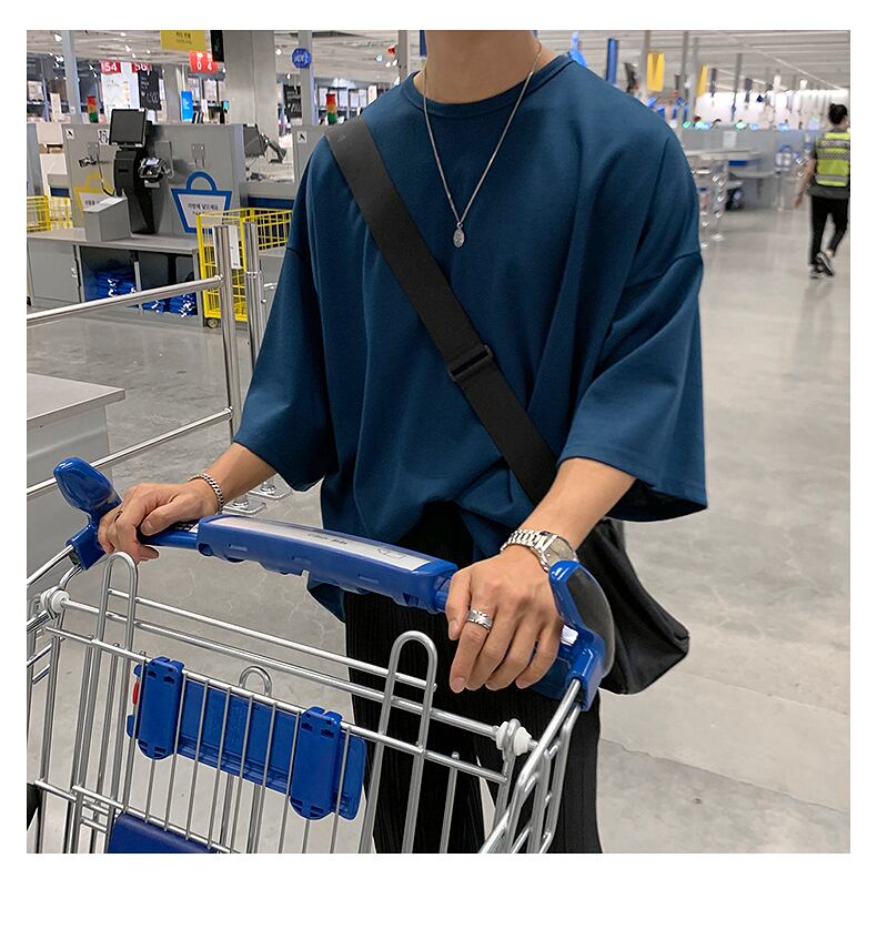 トレンドの夏の新作半袖Tシャツメンズバージョンルーズでシンプルなオールマッチ無地コットン5点スリーブTシャツトップ サマー 夏物 ソリッドカラー BLUU81128063317