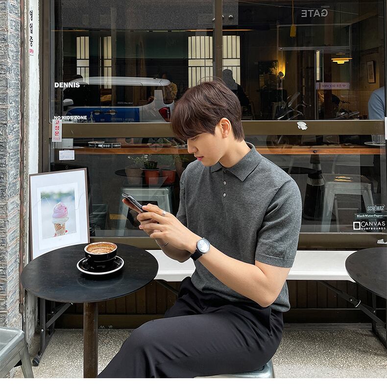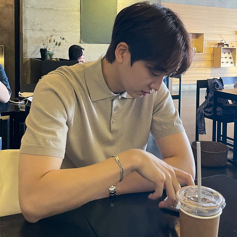 2022年夏の新作ラペルポロ半袖メンズタイドブランドルーズ香港スタイル無地Tシャツセータートップ薄切片 サマー 夏物 ソリッドカラー BLUU33591440963