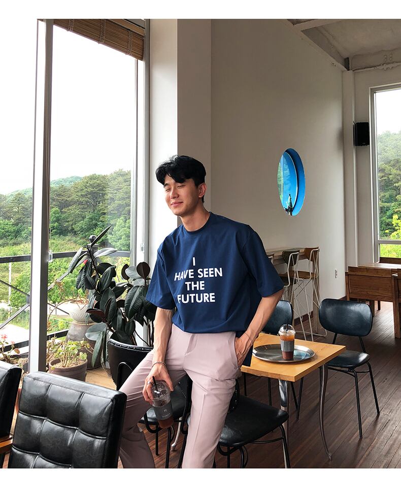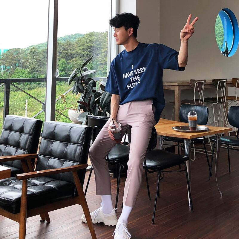 夏のラウンドネックプリントTシャツメンズ半袖コットンタイドブランドトレンドパーソナリティファッションバージョンルーズTシャツボトミングシャツ サマー 夏物 Oネック BLUU11825490927