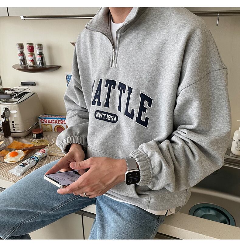 秋のスタンドカラーセーターメンズタイドブランドルーズプルオーバーレタープリントトップスバージョントレンドオールマッチカジュアルジャケット オータム 秋物 BLUU31264963272