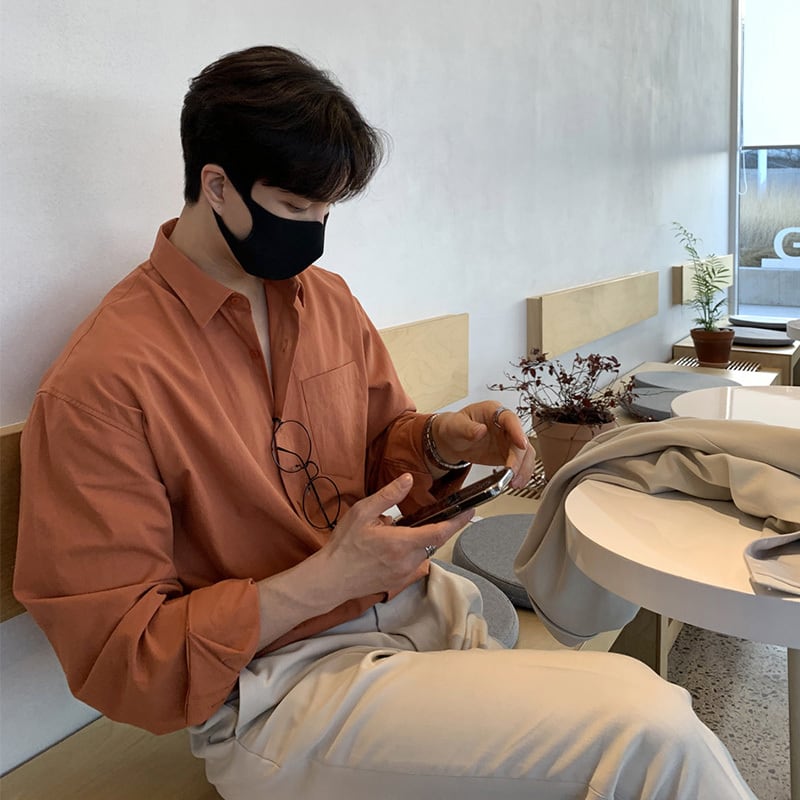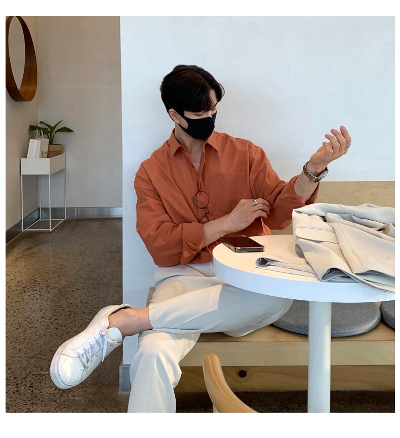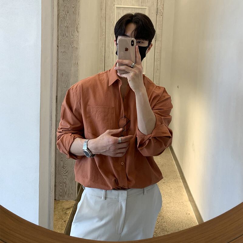 春の長袖シャツメンズハイエンド香港スタイルのeseカジュアルシャツワイルドバージョントレンドイントップコート ロング スプリング 春物 BLUU29623009565