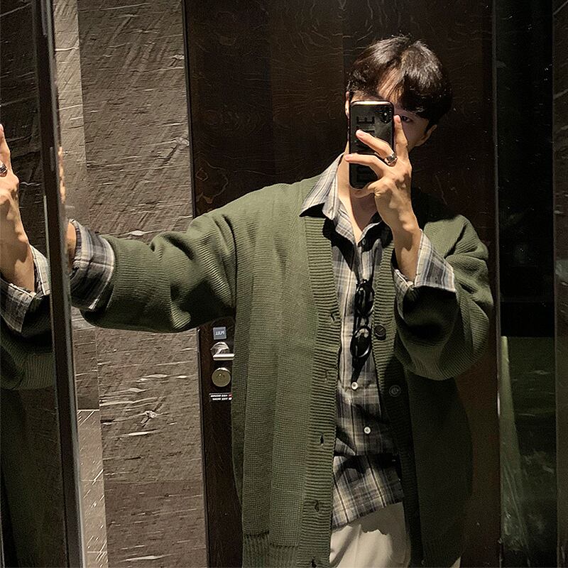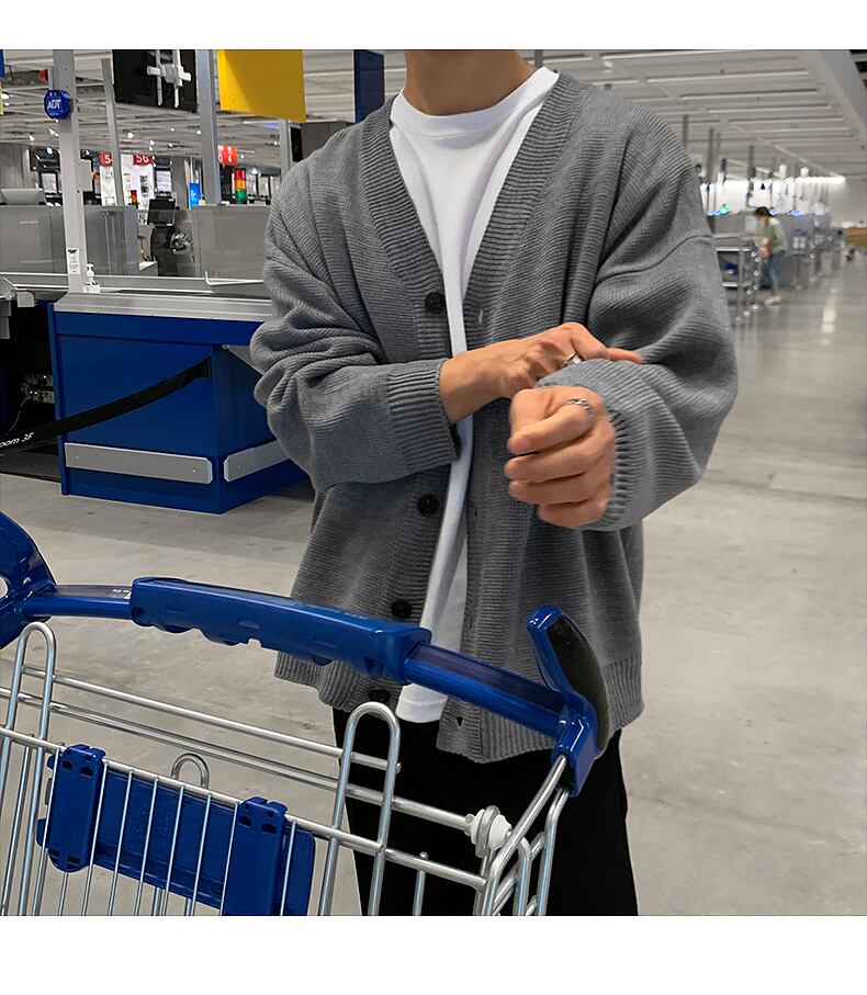 2022年春のトレンドパーソナリティVネックセータールーズで怠惰なスタイルの無地ニットカーディガンメンズジャケットバージョン スプリング 春物 ソリッドカラー BLUU13939992492