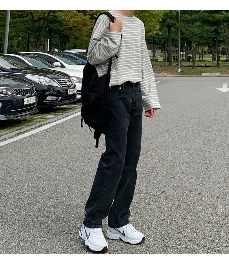 2022年春のブラックストレートジーンズメンズバージョンルーズタイドトレンドワイドレッグパンツ多用途 スプリング 春物 ワイドパンツ BLUU96995364401