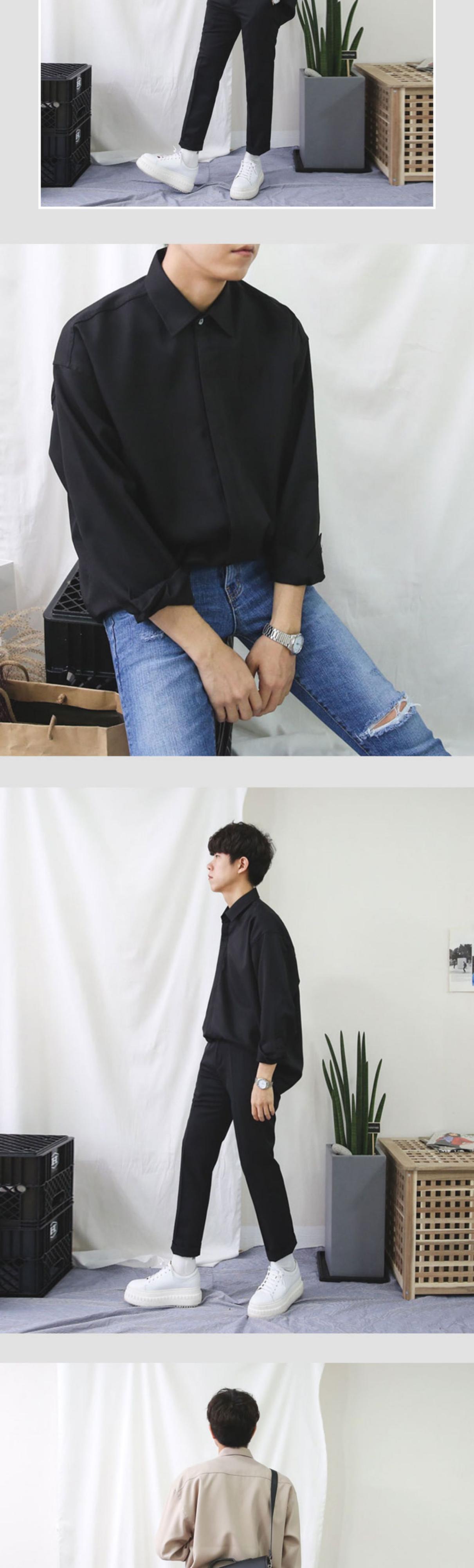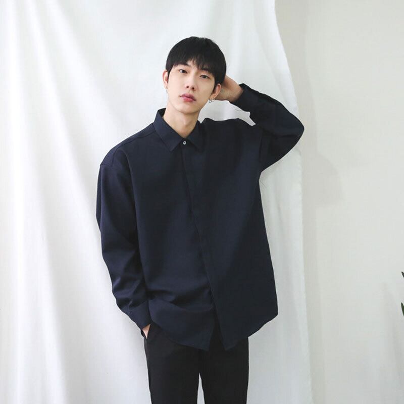 ドンデムンメンズウェアスタイル絶妙な無地春夏新作ラペルルーズ長袖シャツトレンディなシャツ ロング スプリング 春物 サマー 夏物 ソリッドカラー BLUU78476664355