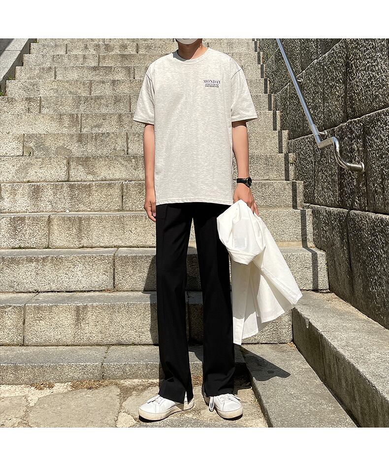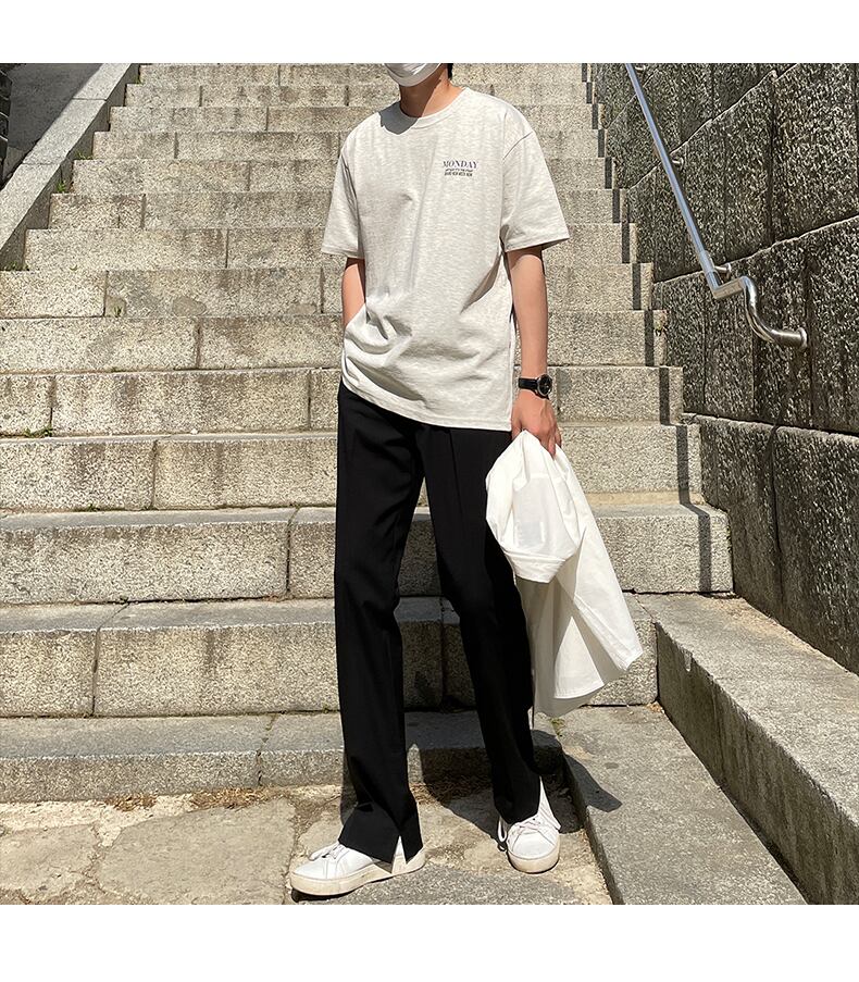 パンツメンズサマー薄切片トレンドルーズストレートワイドレッグオールマッチドレープアイスシルクスーツロングパンツ 夏物 BLUU6227389924