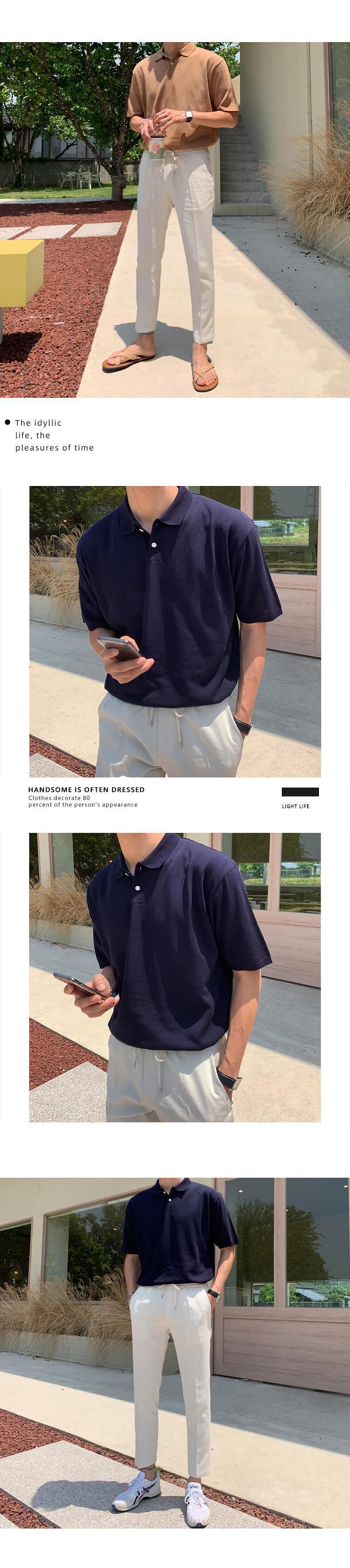 夏の新作半袖Tシャツメンズバージョントレンドルーズラペルポロシャツ半袖トップスニットセーター薄手 サマー 夏物 BLUU12827400399