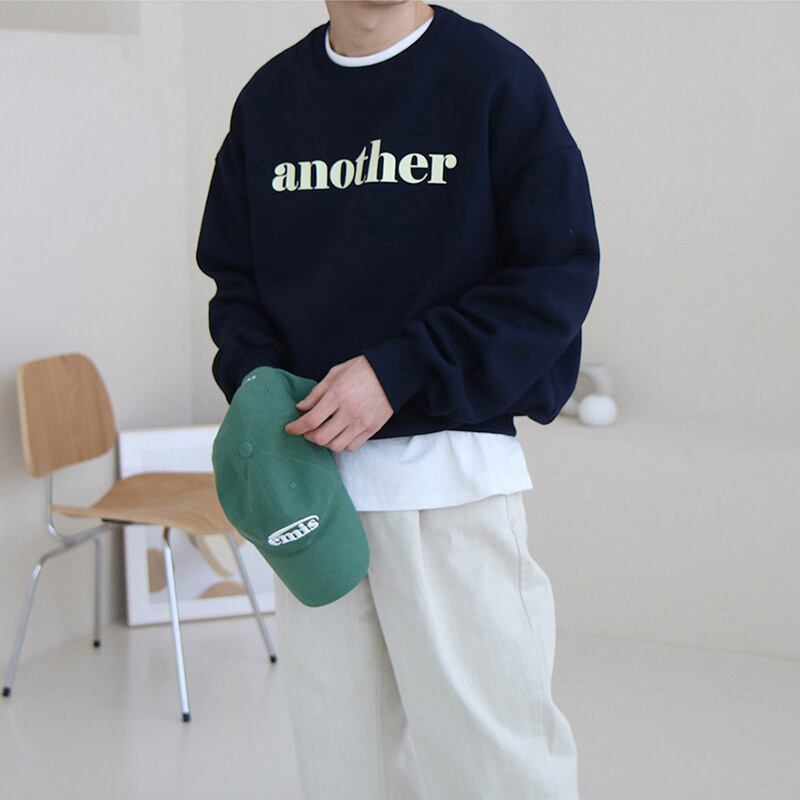 2022年香港スタイルのレトロプルオーバーセーターメンズタイドブランドトレンドルーズカジュアルレタープリントラウンドネックトップコート Oネック BLUU31283828734