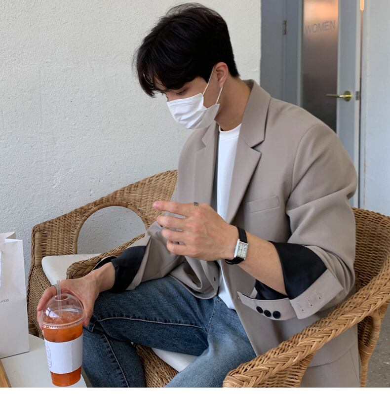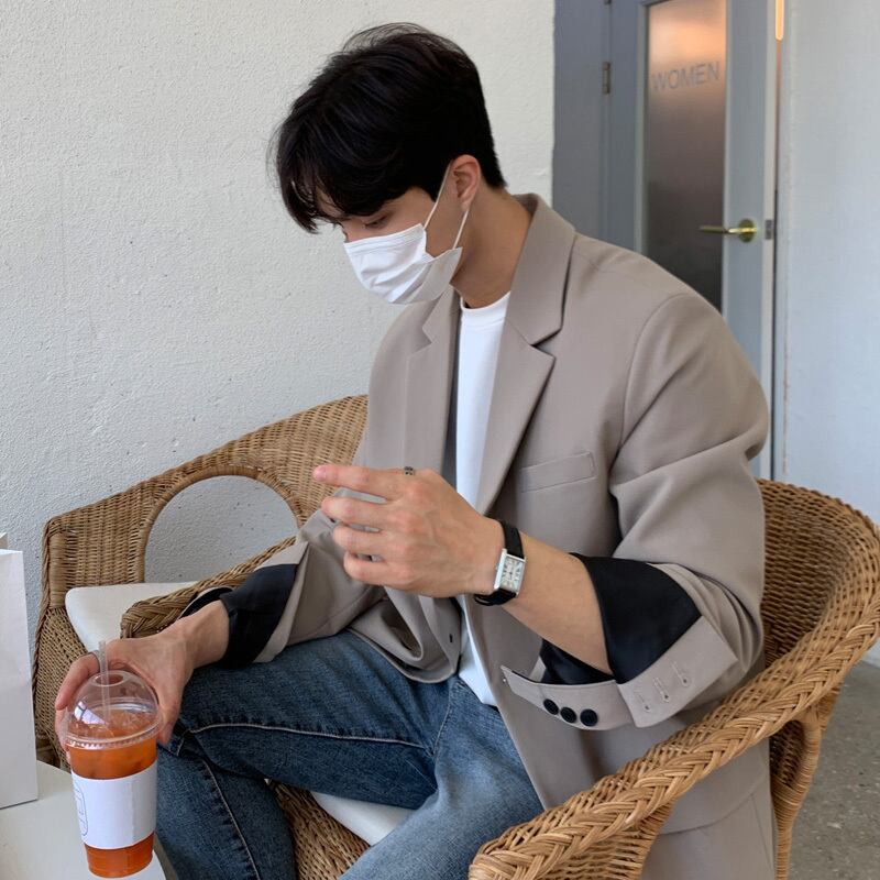 スーツジャケットメンズ2022年新バージョンのトレンドインオールマッチルフィアンハンサム香港スタイルルーズカジュアルスモールスーツトップ BLUU15377222211