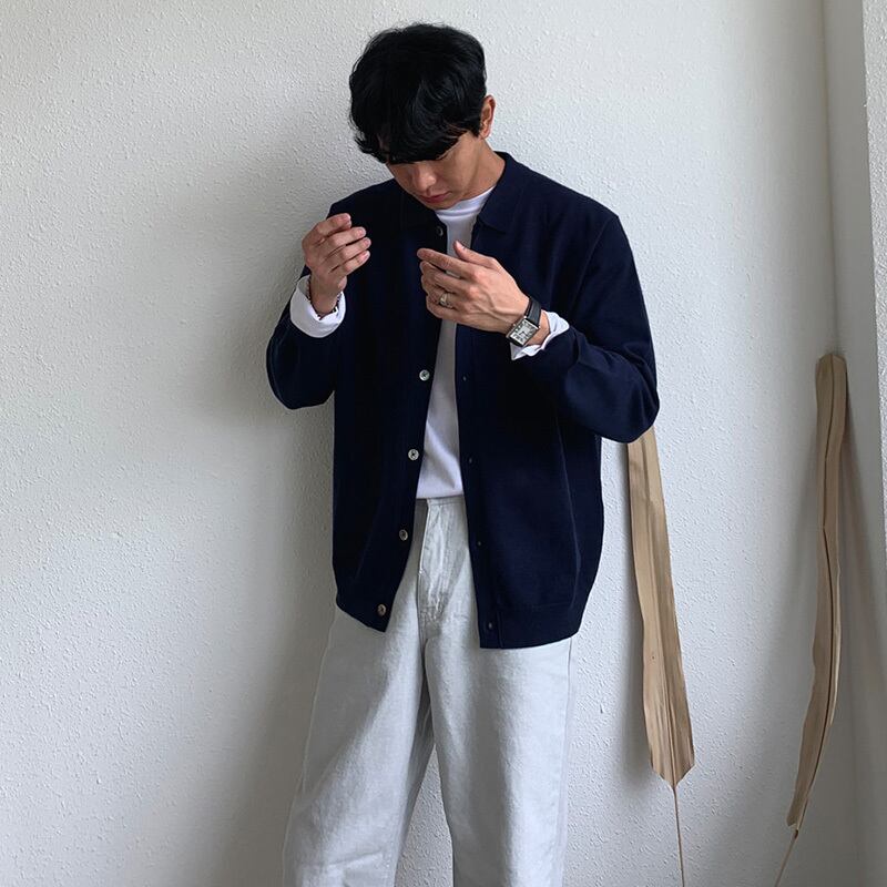 2022セーターメンズトレンドルーズソリッドカラーシンプルラペルニットセーターカーディガンジャケット薄手 BLUU71771140847
