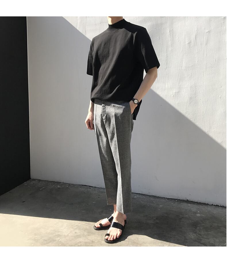 夏のスモールタートルネックTシャツメンズ半袖バージョントレンドカジュアル無地Tシャツルーズボトミングシャツトップトレンド サマー 夏物 ソリッドカラー BLUU56479384116
