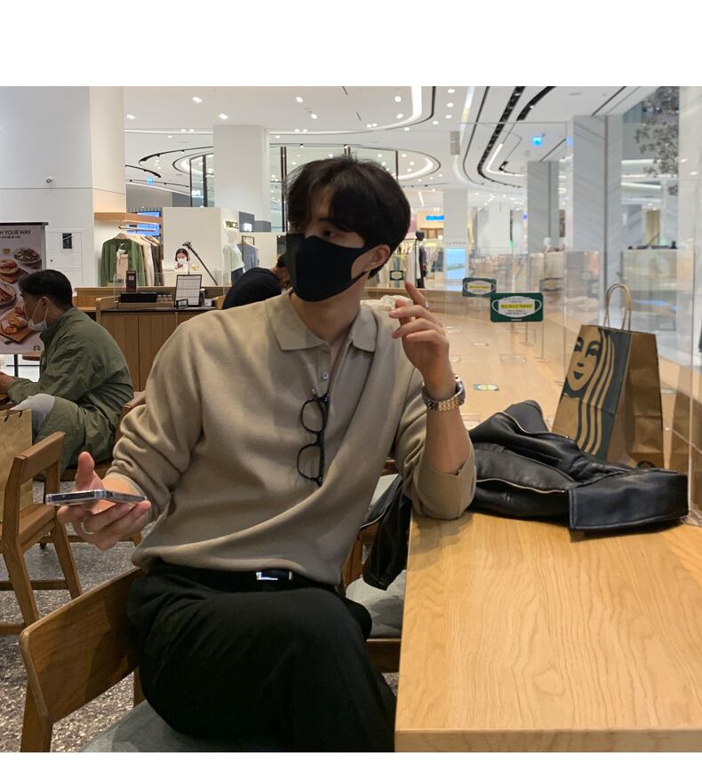 秋冬新作ラペルポロシャツセーターメンズルーズトレンドオールマッチ無地長袖ボトミングセータートップス ロング オータム 秋物 ウィンター 冬物 ソリッドカラー BLUU81810157282