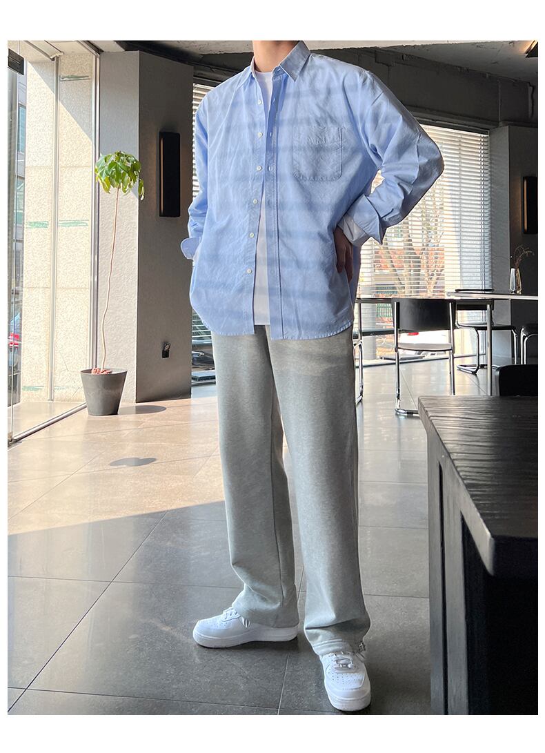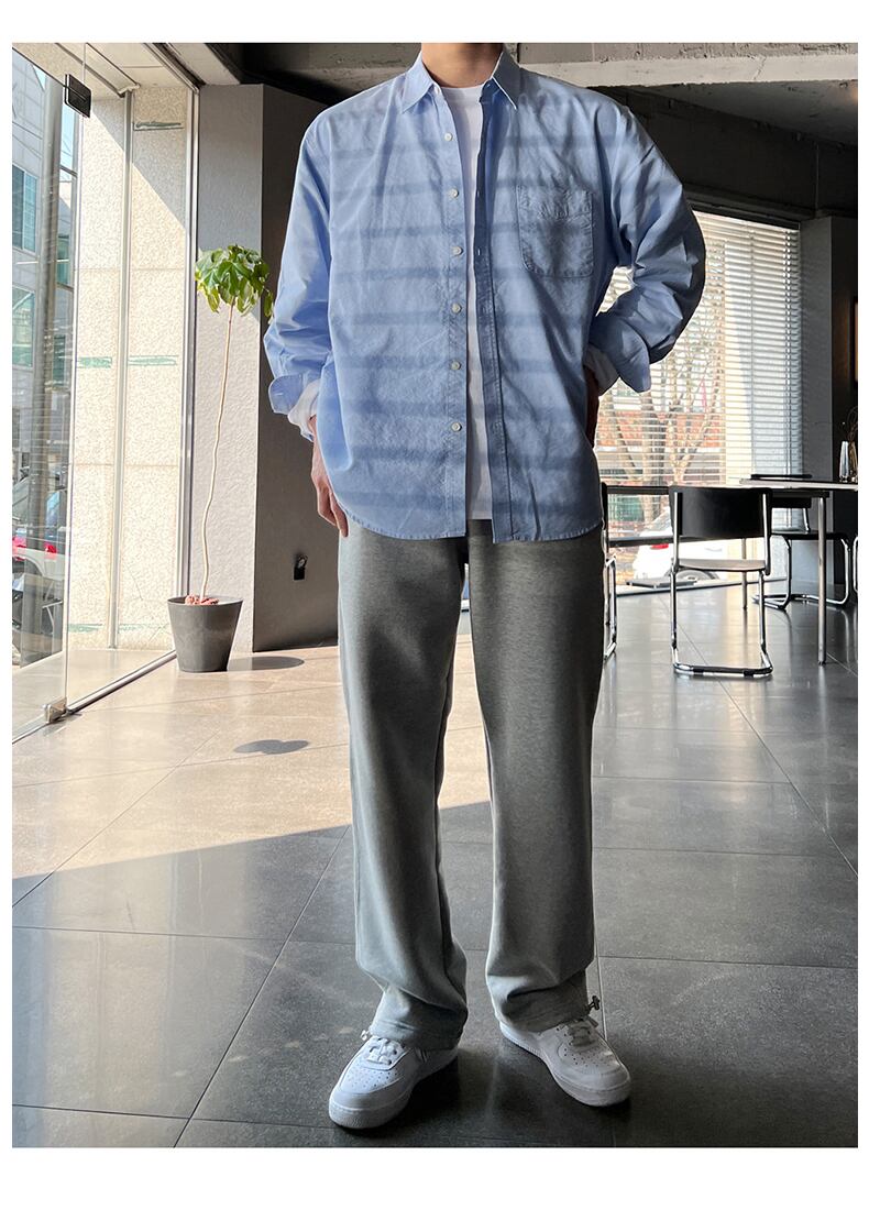 ライトブルーシャツメンズハイエンド長袖トップ春トレンドオールマッチルーズカジュアルシャツコート ロング スプリング 春物 BLUU7643933346