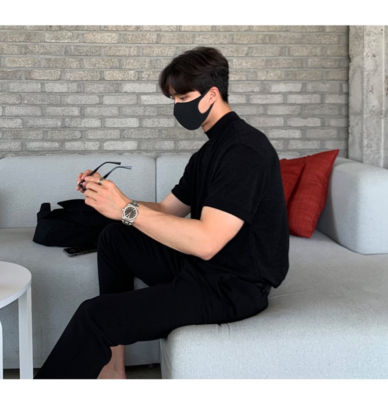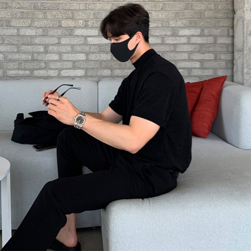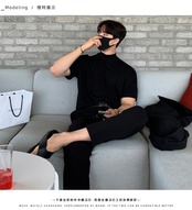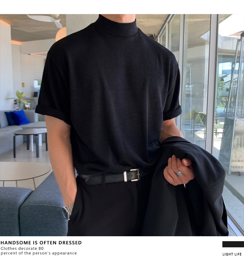 夏の新作ハーフハイネック半袖Tシャツメンズバージョンルーズコットン無地ハーフスリーブ香港スタイルボトミングシャツTシャツトレンド サマー 夏物 ソリッドカラー BLUU26658968883