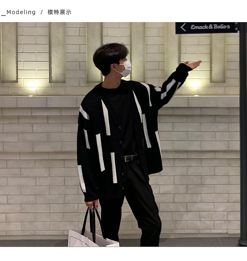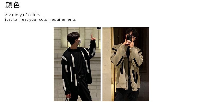 2022セーターメンズルーズレイジーウィンドバージョントレンドパーソナリティVネックニットセーターカーディガンジャケット BLUU94464764462