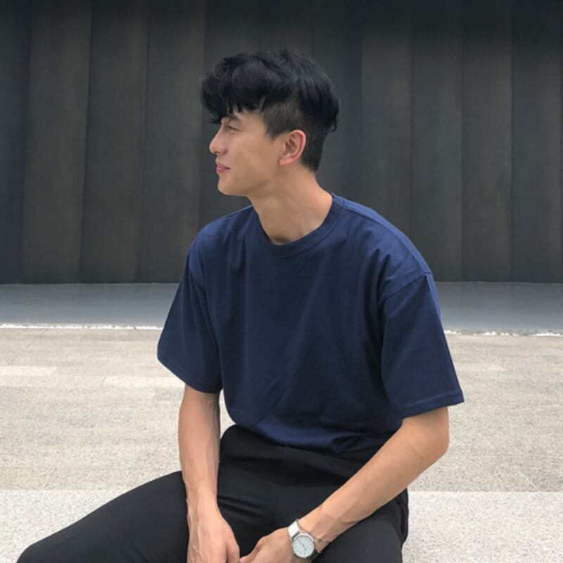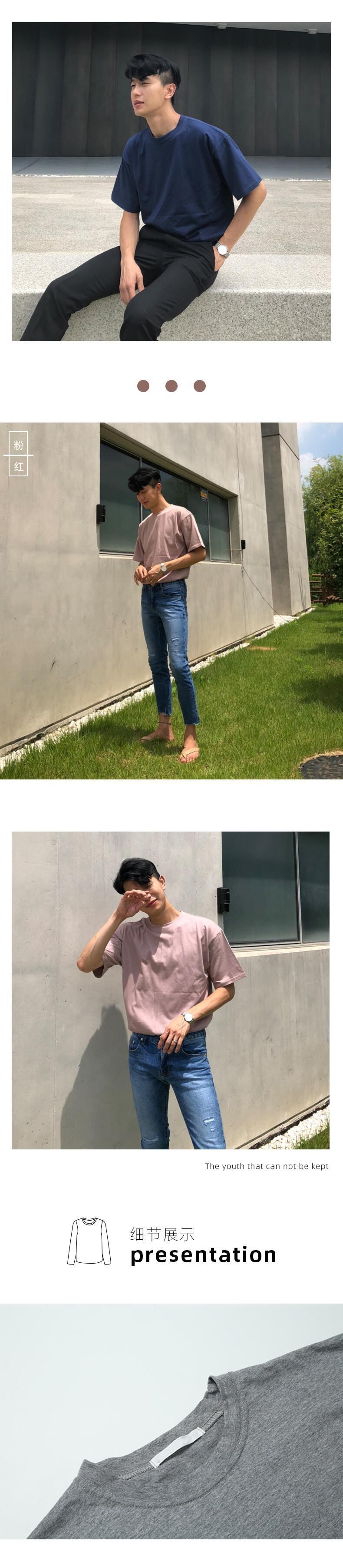 夏無地ラウンドネック半袖メンズルーズTシャツトレンドカジュアルカップル半袖オールマッチ学生Tシャツシンプル サマー 夏物 Oネック ソリッドカラー BLUU14457624258