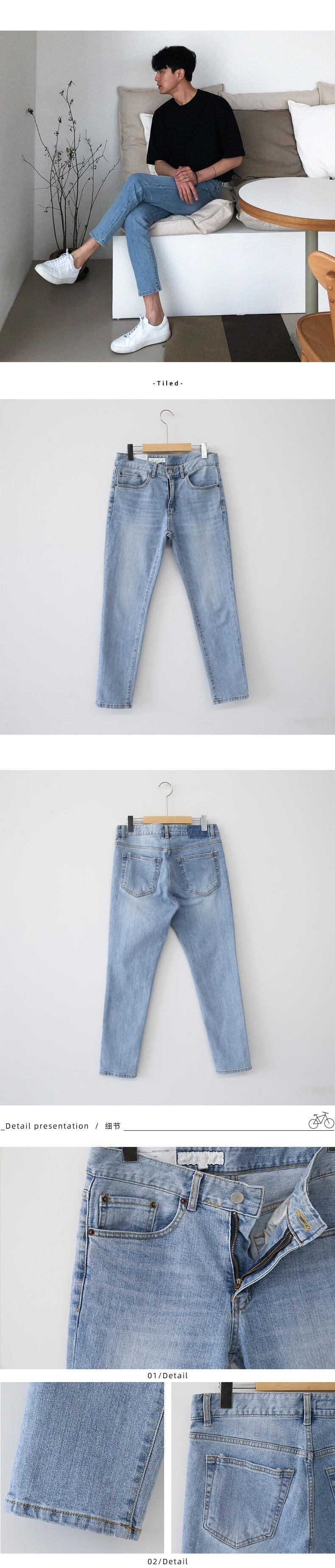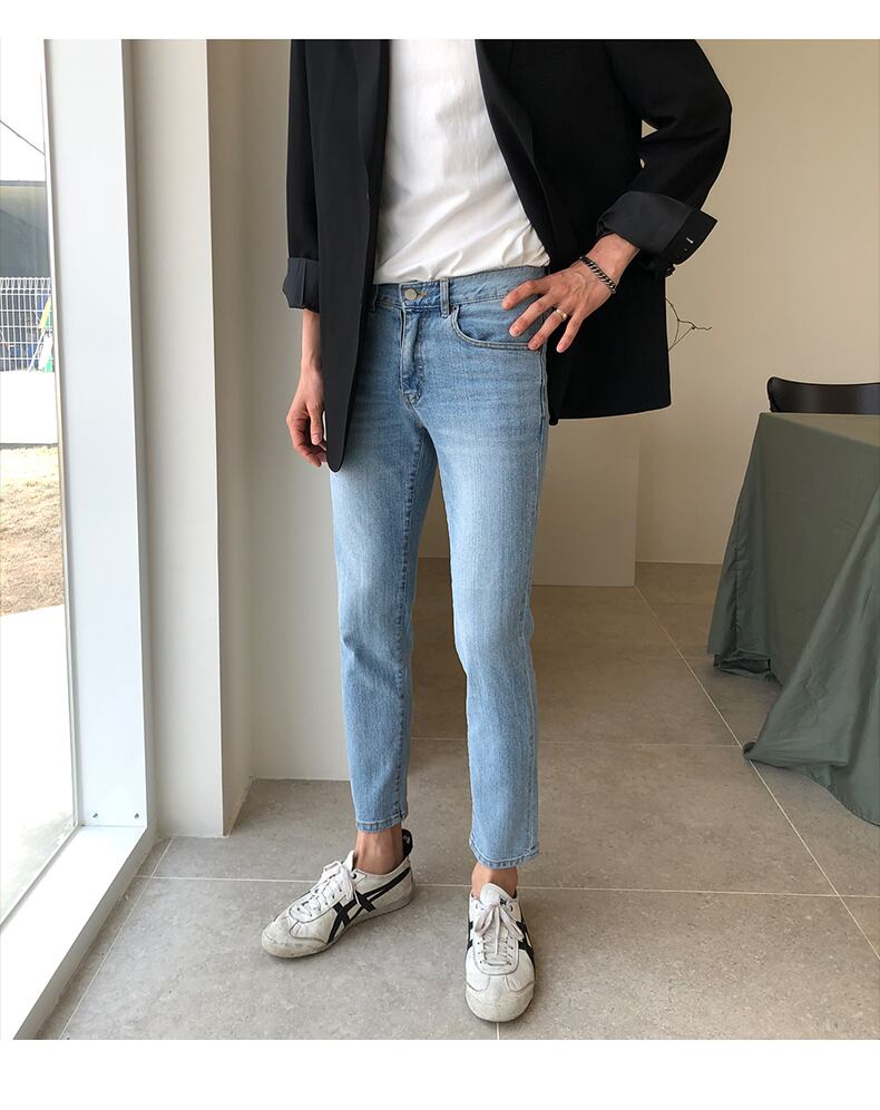 ライトブルーストレッチナインポイントジーンズメンズタイドトレンドスリムストレートスモールフィートパンツ2022 BLUU37273351456