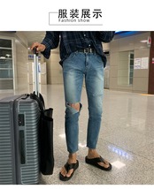 破れたジーンズメンズサマー薄片タイドブランドストレートスリムスモールフィートバージョンオールマッチカジュアル乞食9点パンツ 夏物 BLUU41672095609