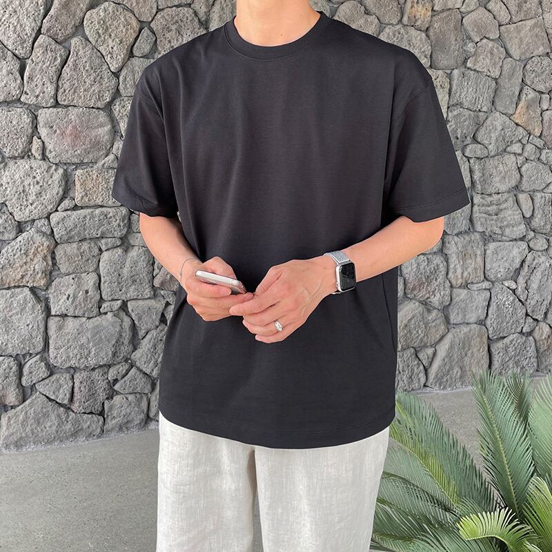 夏無地コットン半袖メンズタイドブランドトレンドルーズシンプルカジュアルワイルドラウンドネック半袖Tシャツ服 サマー 夏物 Oネック ソリッドカラー BLUU31752597025