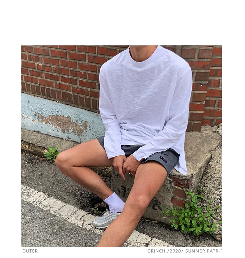 2022年夏の新ラウンドネック長袖Tシャツメンズ薄片ルーズバージョントレンド無地日焼け止めボトミングシャツトップ ロング サマー 夏物 Oネック ソリッドカラー BLUU22904919839