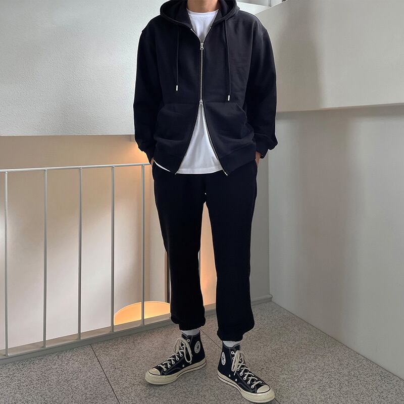 色:グレーのセーター,グレーパンツ,黒いセーター,黒いズボン,白灰色のセーター,ホワイトグレーパンツ