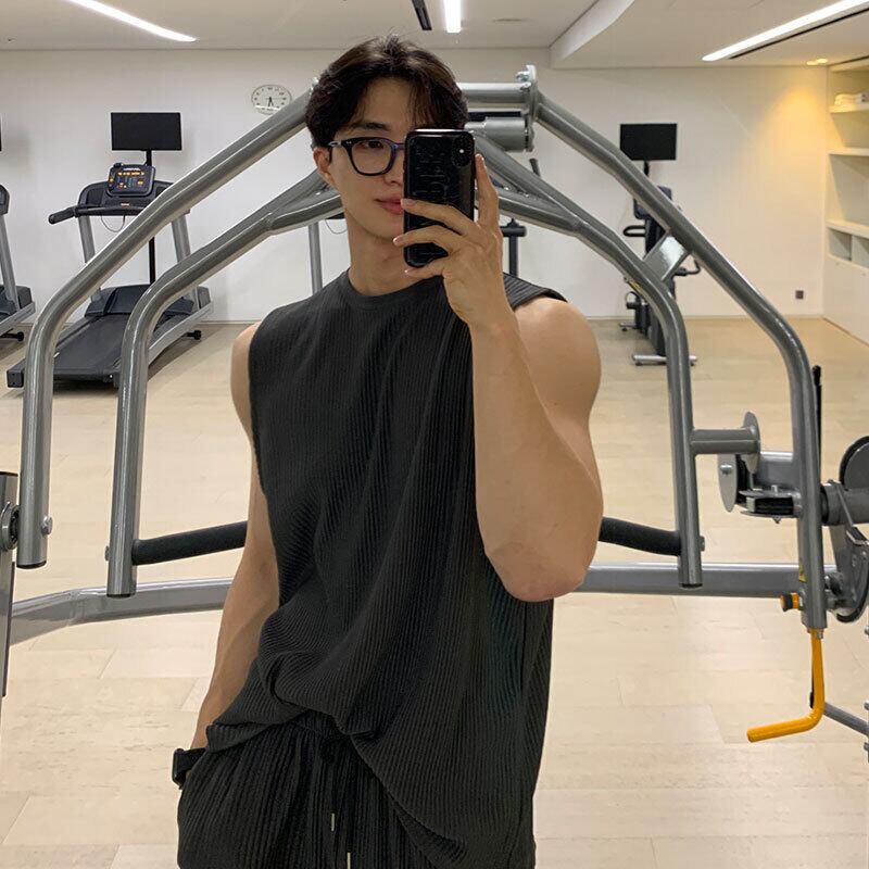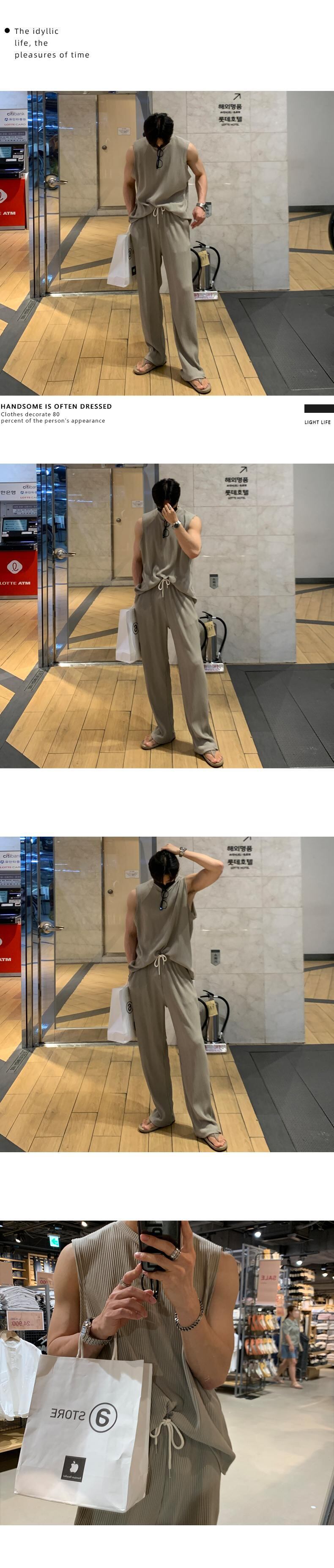 2022年夏の薄手のスポーツスーツメンズノースリーブベストバージョントレンドルーズストレートアイスシルクカジュアルロングパンツ サマー 夏物 BLUU29696697465