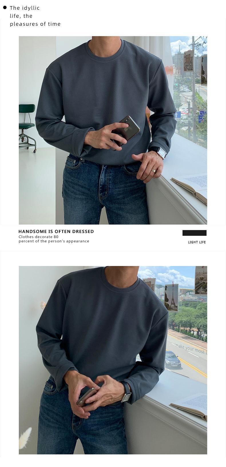 春の新作ラウンドネックTシャツメンズルーズバージョン無地コットン長袖インナーボトミングシャツTシャツ服トレンド ロング スプリング 春物 Oネック ソリッドカラー BLUU45016728461