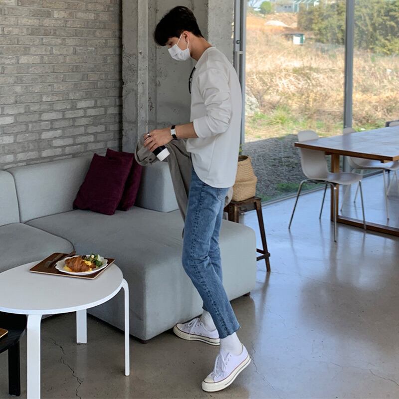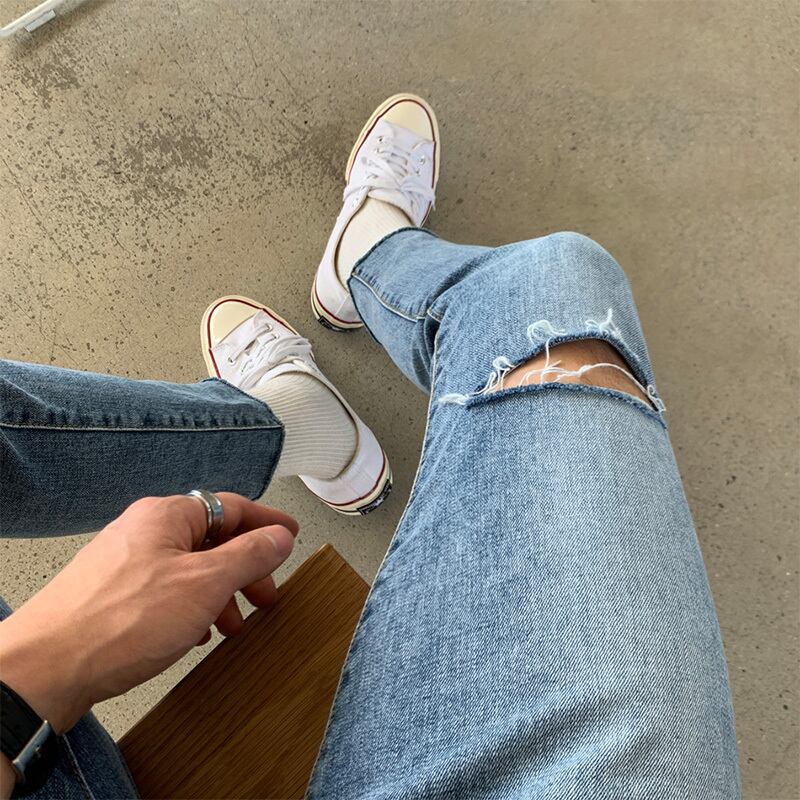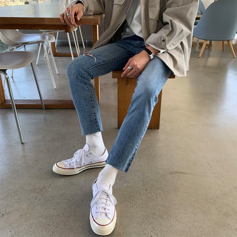 破れたジーンズメンズサマー薄片バージョンのタイドブランドトレンドスリムスモールフィートライトカラーカジュアル9点パンツオールマッチ 夏物 BLUU73656898362